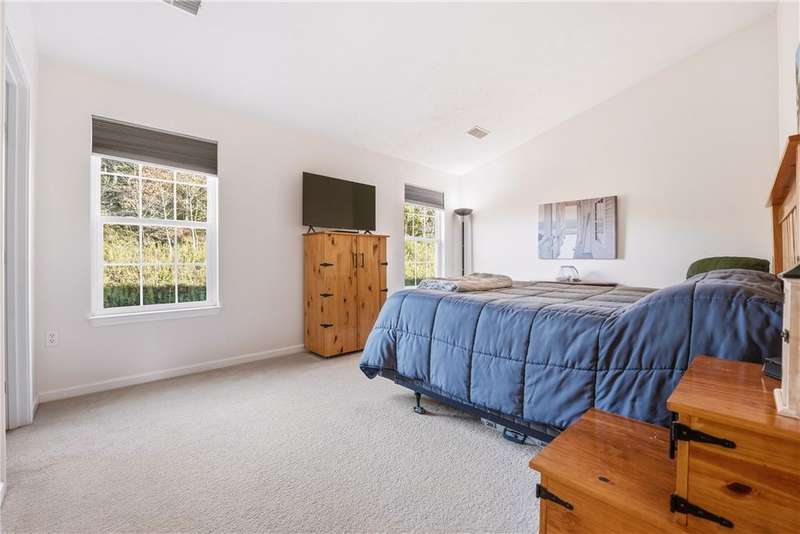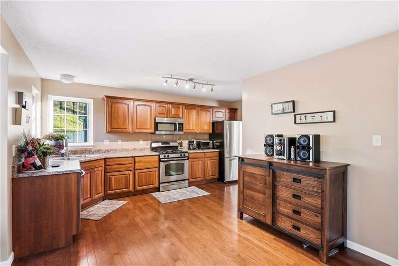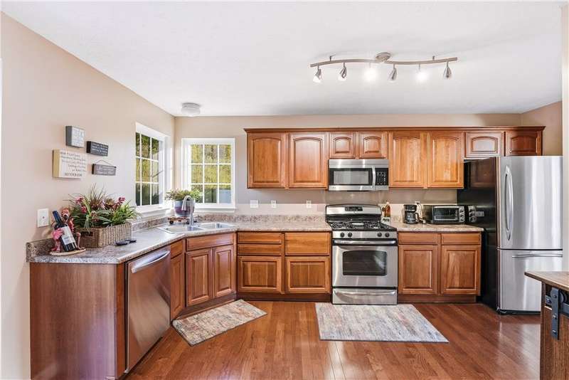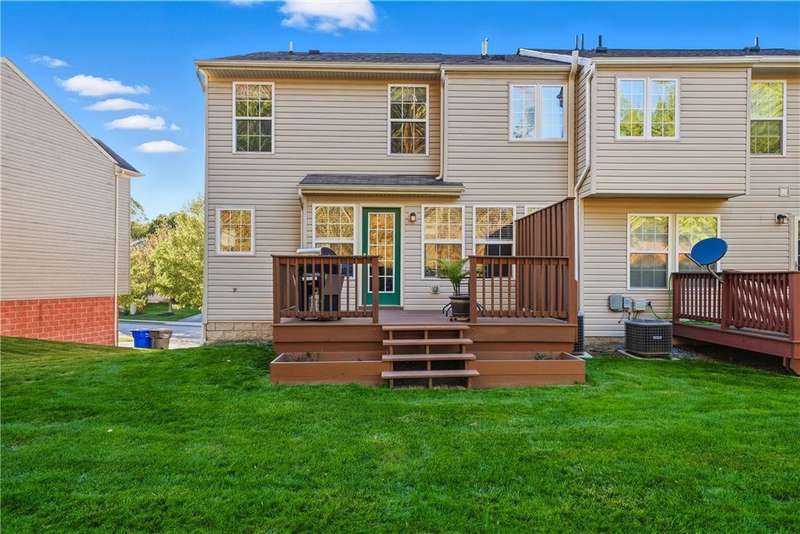 Welcome home to this meticulously maintained end unit w/ 2 ft. extension in accessible Kaufman Run. Brick front provides attractive exterior appeal. Grand open entryway features large palladium window. Enter into the spacious Living room which presents abundant natural light recessed appointments. A fully equipped Kitchen includes stainless appliances & sink, flanked by corner window, gas stove, pantry, generous amount of Mapel cabinetry which is open to the Dining room which includes a large bay window. The Owners quarters reveal vaulted ceiling, walk-in closet highlighted by barn door entry, double sinks, whirlpool & shower. Two additional bedrooms, each w/ vaulted ceilings, full bath & laundry facilities complete the second floor. A finished lower-level w/ wet bar provides additional enjoyment area & includes ample storage. The rear deck provides comfort & is enhanced by a private tranquil area. Enjoy maintenance free living at a minimal fee. Well maintained immediate occupancy!