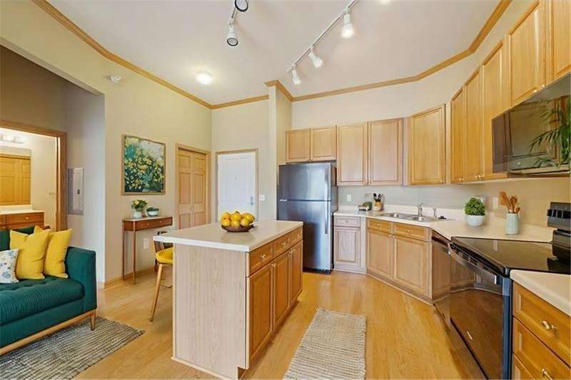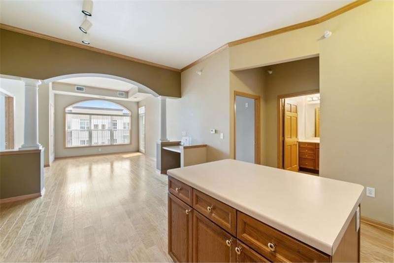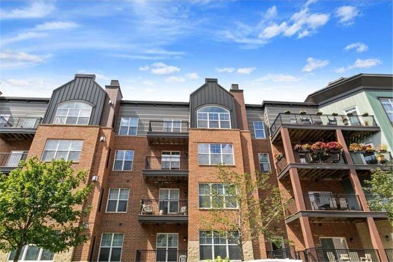 This 4th floor condo is bright with a giant transom window in the living room and extra ceiling height. Open concept floor plan perfect for work from home with the small bonus room/den/bedroom that can function as an office. Spacious kitchen with tons of storage, brand new microwave, dishwasher and stove. In-unit laundry, hardwood flooring except in bedrooms and built-in desk are some of the many amenities of this unit. A balcony faces east for morning sun. Underground heated parking, EV infrastructure in underground garage; it's buyer's responsibility to install charging equipment at their expense if desired. common areas like party room, package room and fitness center complete this luxury building. Conveniently located near airport, Mississippi River parks/paths, and Highland Village. Call this your new home today!