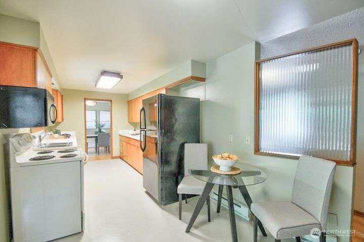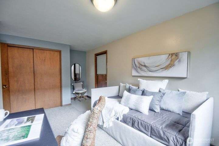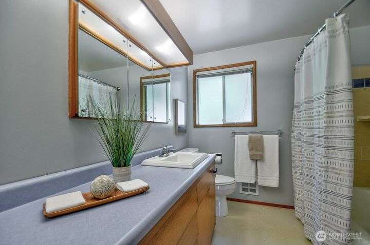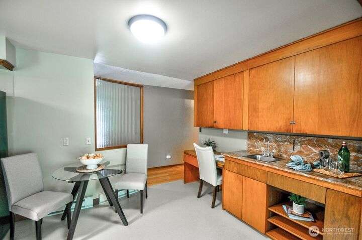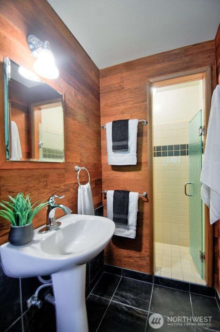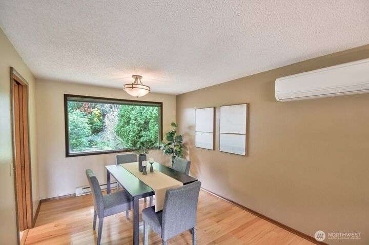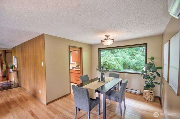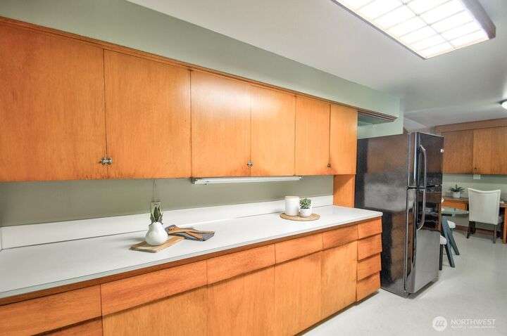 Classic style of this 1950's neighborhood meets thoughtful updates! Enter to mid-century slate, paneling, stone work - original cabinetry, modern open floor plan. Living room features the warmth of a fireplace and views to the front gardens. True dining room space adjoins the kitchen with its generous counter space and well-honed cabinets from 1957. Built in desk & wet bar too! Primary suite w/updated bathroom, refreshed hall bath that honors the era + two more bedrooms complete the picture. Peaceful yard with large new deck - backing to green space for bird life and privacy, creating a gorgeous backdrop to outdoor entertaining and views from the sun room. So close to Oly schools & quick trip to the Capital, Downtown & amenities.