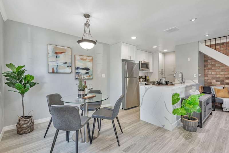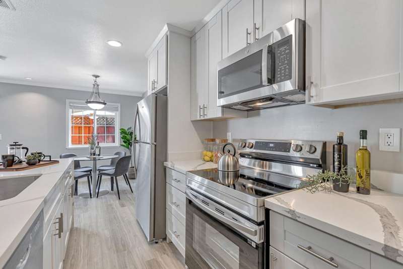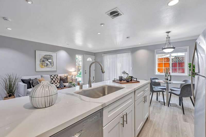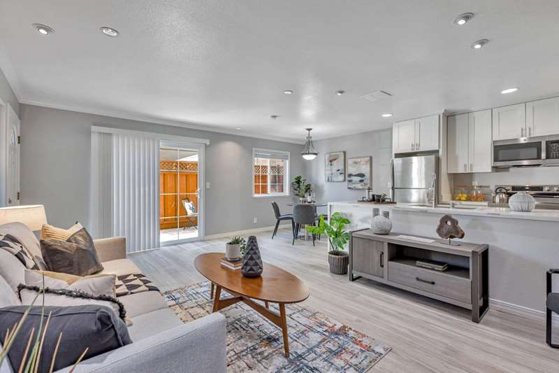 Welcome to 779 Warring Drive #3, where no detail has been overlooked in this fully renovated and reimagined 2 bedroom, 1 bathroom sanctuary. Surpassing recent comparable sales, this home boasts custom upgrades and elegant design touches throughout, offering a level of luxury rarely seen at this price. Step inside to find a stunning open concept living area, flooded with natural light and complemented by recessed lighting, new crown molding, and high end flooring. The heart of the home is a completely rebuilt kitchen, featuring new stainless steel refrigerator, oven, dishwasher, microwave, and a matching deep sink. Polished quartz waterfall countertops add a modern sheen, perfectly accented by a new in unit washer/dryer. All work performed by a licensed contractor. The refreshed bathroom sports quartz counters, contemporary vanity, new lighting and mirrors, and a stylish shower-over-tub framed by a chic backsplash. Enjoy your morning coffee or evening glass of wine on the private patio, easily accessible via a new dual-pane sliding glass dooryour own peaceful escape in the heart of South San Jose. Thoughtful upgrades continue with fresh interior paint, a reconfigured layout for improved flow, and secure garage parking with two dedicated storage units and freshly repainted doors.
