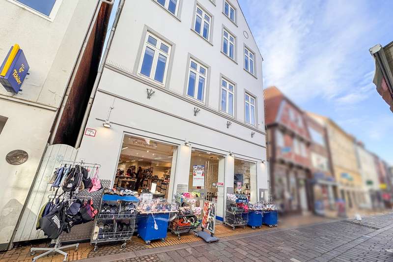 This extremely well-kept commercial building has a long history and the first records indicate that it was built in 1866. Since then, the property directly in Rendsburg's city centre has established itself as an important location for well-known clothing stores in the region and has been expanded, renovated and modernized several times. The approx. 800 m² of sales, office and storage space extends over a total of three full storeys and an attic and can be flexibly divided and used thanks to a reinforced concrete construction with concrete ceilings, two separate stairwells and, in some cases, lightweight walls. The commercial space on offer is located on the 2nd floor and is accessed via a stairwell, which can be reached via a private entrance on the right-hand side of the building. Originally, this space was accessible via an elevator and a representative staircase from the first floor. However, these entrances were closed and a versatile space of approx. 135 m² was created, which is currently divided into two rooms by a lightweight wall. Both rooms have sufficient daylight and therefore offer a pleasant working atmosphere. A storeroom, which also houses the building's air conditioning system, serves as a storage room. The WC is located on the top floor of the property. Further storage space is available on the top floor on request. The building has a very good basic structure, has been continuously renovated and maintained and is very well cared for. It offers a timeless design, a wide range of possible uses and an excellent location in the center of Rendsburg. Shopping facilities, restaurants, parking spaces and public transportation are in the immediate vicinity. Attractive location and development potential - what are you waiting for?