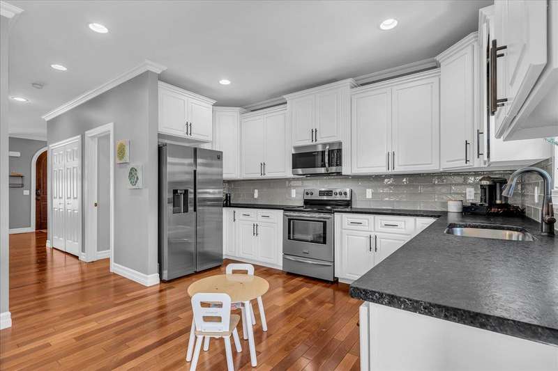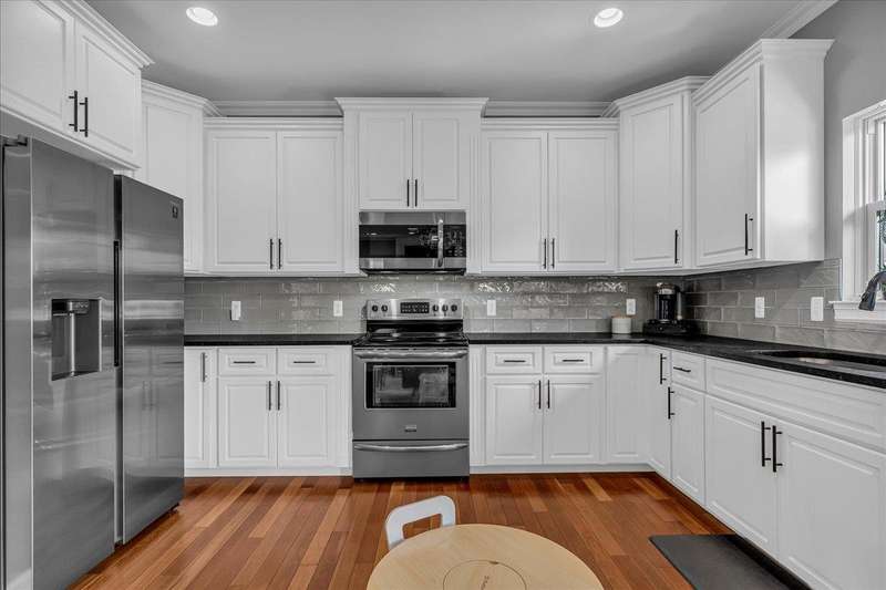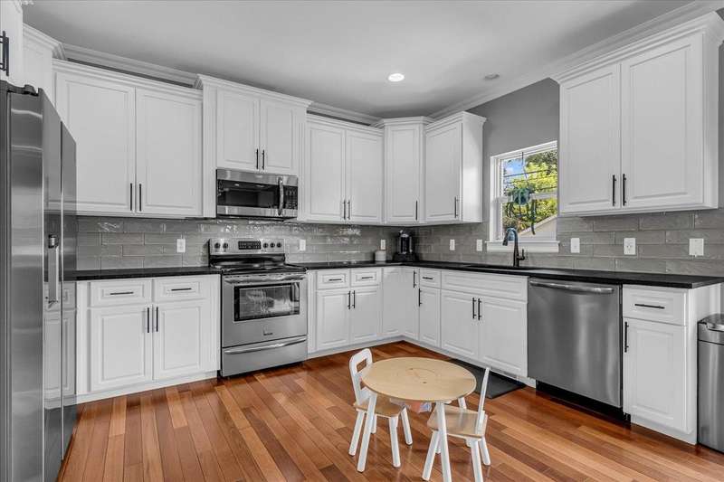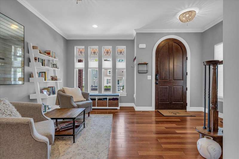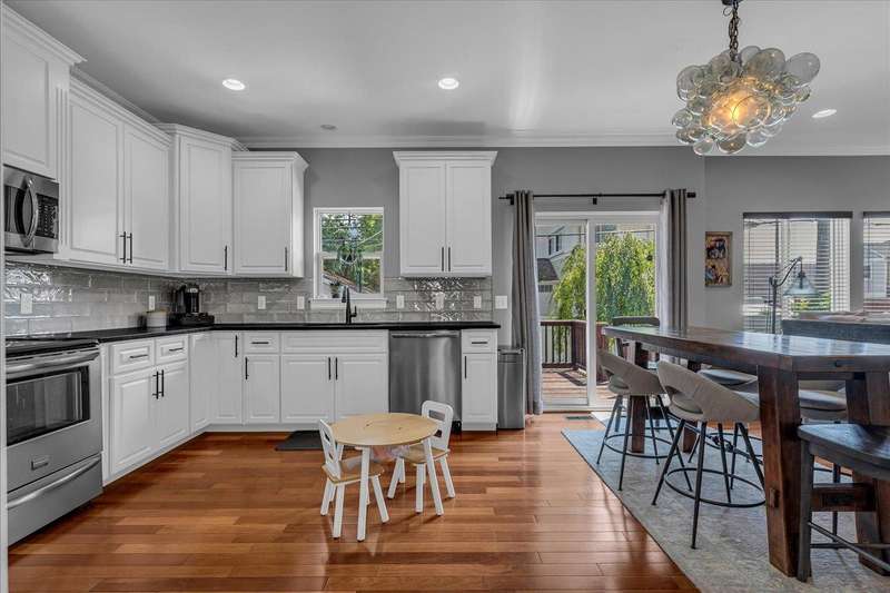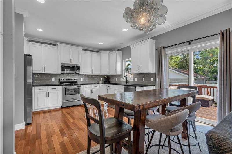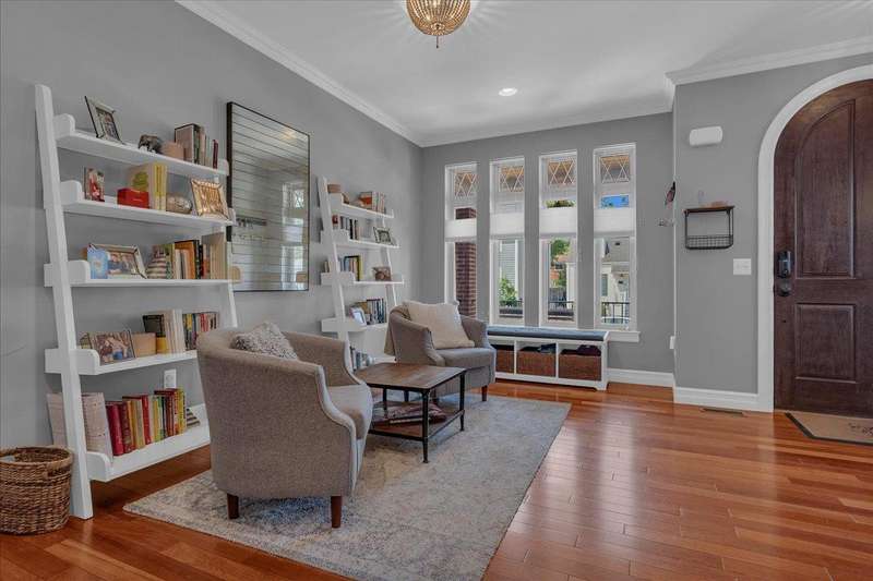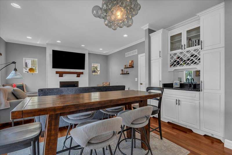Stunning Tudor-style home offering over 3,100 sq ft of beautifully finished living space, located just minutes from vibrant Downtown Royal Oak, the year-round Farmers Market, local parks, and top-rated dining and shopping. This 4-bedroom, 3.1-bath residence includes an attached garage and an extra-wide driveway accommodating two vehicles. Inside, you'll find an inviting open floor plan featuring high ceilings, crown molding, and Brazilian cherry floors on the main level. The updated kitchen boasts granite countertops, stainless steel appliances, sleek backsplash, and a newer dishwasher. It opens to the dining area and spacious family room with a gas fireplace, shiplap surround, built-in benches, and a rustic wood beam mantle. A wet bar adds convenience for entertaining, while the deck and fenced backyard extend your living space outdoors. Or enjoy the covered front porch with beadboard overhang—a charming place to unwind. Upstairs, the generous primary suite features a jetted tub, walk-in tiled shower, dual sinks, a walk-in closet, plus two additional closets and storage nooks. Two more bedrooms include ample closet space, one with its own private balcony and one with a WIC. A beautifully updated full bath with granite counters and newer cabinetry, along with second-floor laundry, complete the 2nd level. The third floor offers a private retreat with a sitting area, full bath, and walk-in closet—perfect for guests, a live-in nanny, or returning student. The professionally finished basement includes daylight windows, a large rec room, workout/play area, electric fireplace, TV (included), and a private office or hobby room. Surrounded by friendly, welcoming neighbors and just steps from the community energy Royal Oak is known for. Move-in ready and meticulously maintained, this home blends charm, comfort, and functionality in one of the city's most desirable neighborhoods. Home is North facing so you will have beautiful sunrise and sunsets off your large deck.