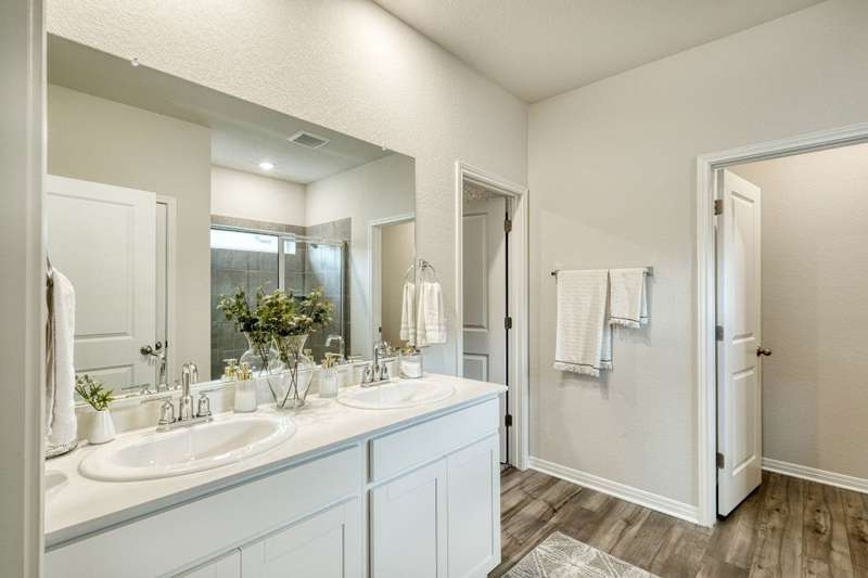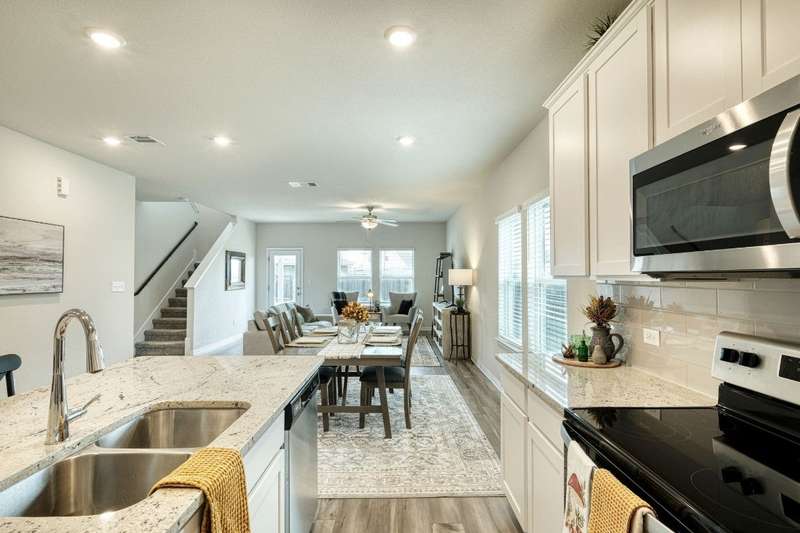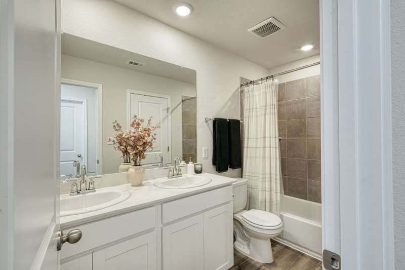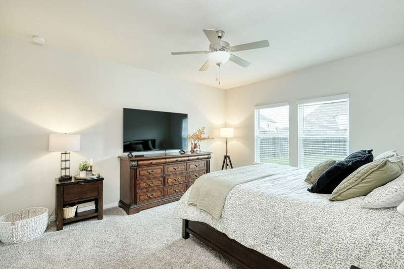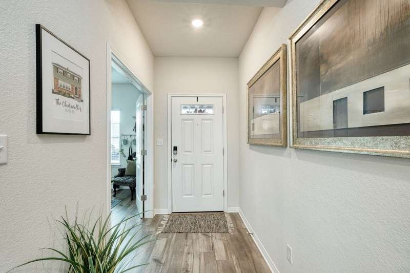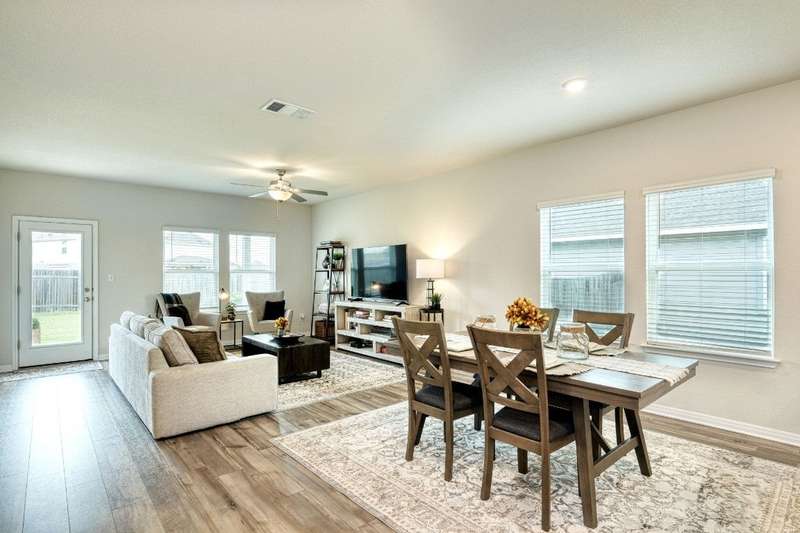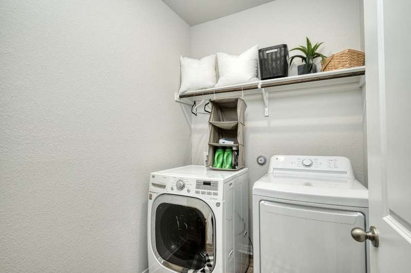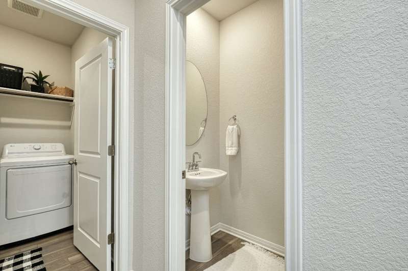 This charming, like-new two-story home boasts 3 spacious bedrooms, 2.5 bathrooms, and luxury finishes throughout. The open-concept main floor features luxury laminate flooring, a modern kitchen with a large island and white cabinets, perfect for entertaining. Enjoy the comfort of the primary bedroom located downstairs, which includes a large walk in shower and dual vanities in the primary bathroom. The front study offers the perfect space for a home office. Step outside to relax on the covered back patio, ideal for outdoor gatherings. With a great layout and ample living space, this home offers both style and function in a desirable Hutto location. Neighborhood amenities include kids splash pad, playground, & sport court. Near major employers and main roadways.