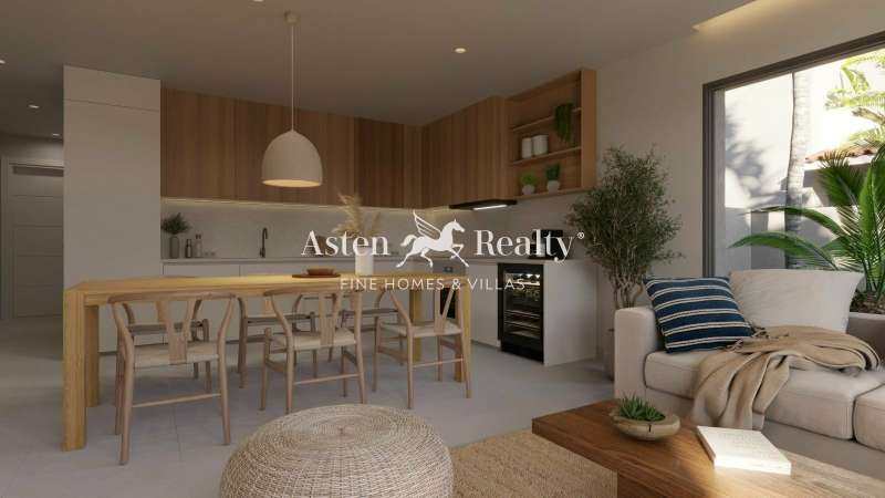 On the ground floor, there is a bright and spacious open-plan living room with a fully furnished and equipped kitchen featuring high-end appliances. This level also includes a double bedroom and a full bathroom. All rooms have direct access to the terraces through large sliding doors that fill the home with natural light.