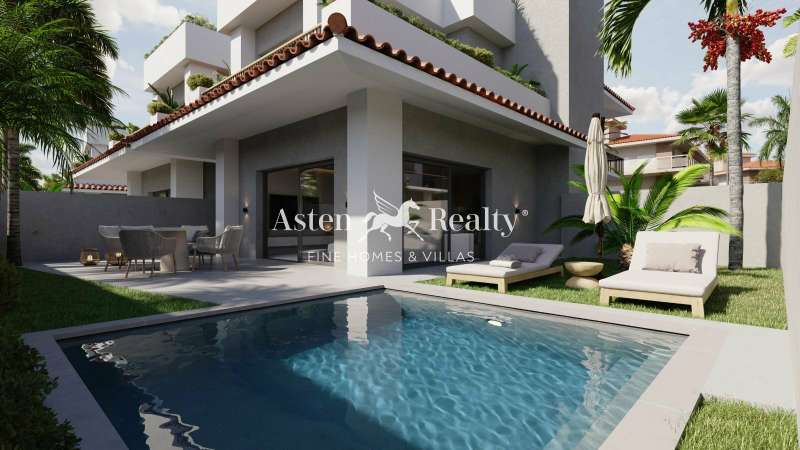 The property is surrounded by a private garden with an elegant swimming pool and spacious terraces, perfect for enjoying the island’s privileged climate.