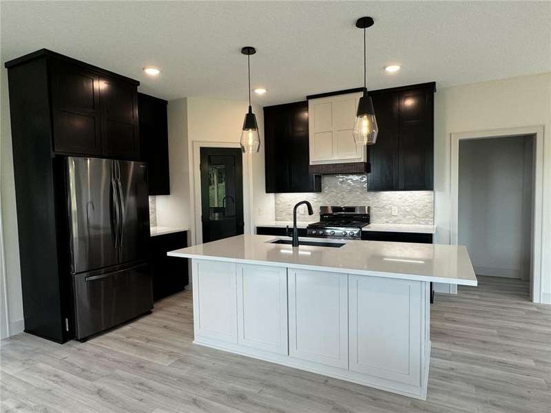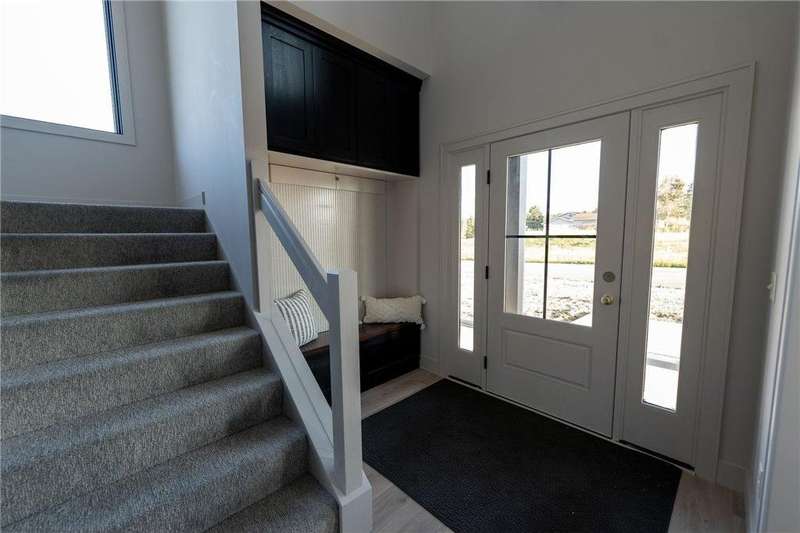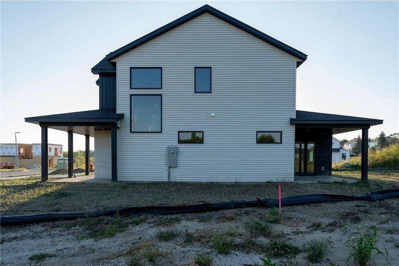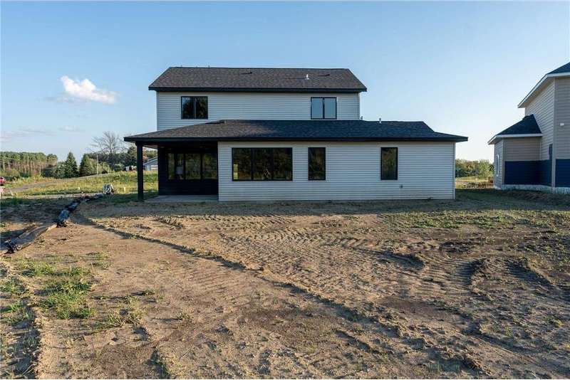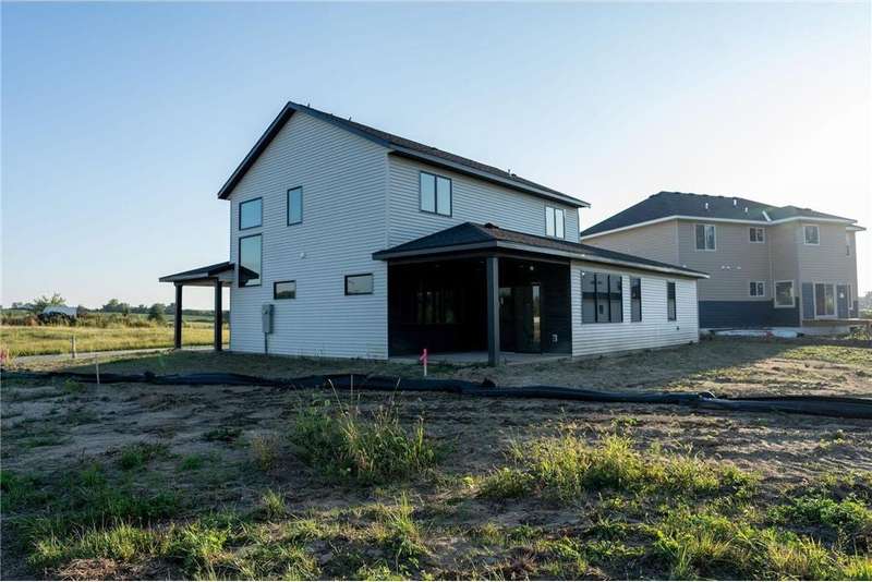 This beautiful slab, two story has a unique layout and stunning finishes! A stone wrapped porch welcomes you in the two story foyer, mudroom, and laundry room, just off the zero entry garage. The main level hosts a modern kitchen with gas stove and custom hood, spacious dining room, living room with fireplace, powder room, rear covered patio, and the primary ensuite has a relaxing bedroom, double vanity quartz tops, and zero entry walk-in shower, along with a generous walk-in closet. The upper level offers a expansive, open loft area, two large bedrooms, a fourth bedroom/office, full bath, a second washer/dryer hookup closet with storage, and a flex room, which is suitable for just about any use! The garage features the utility room, epoxy coat floor, gas line for heater, LED lights, prewired for EV charger unit and a floor drain, You won't see another one just like this!