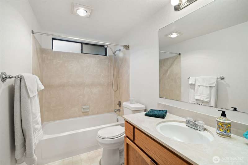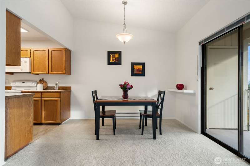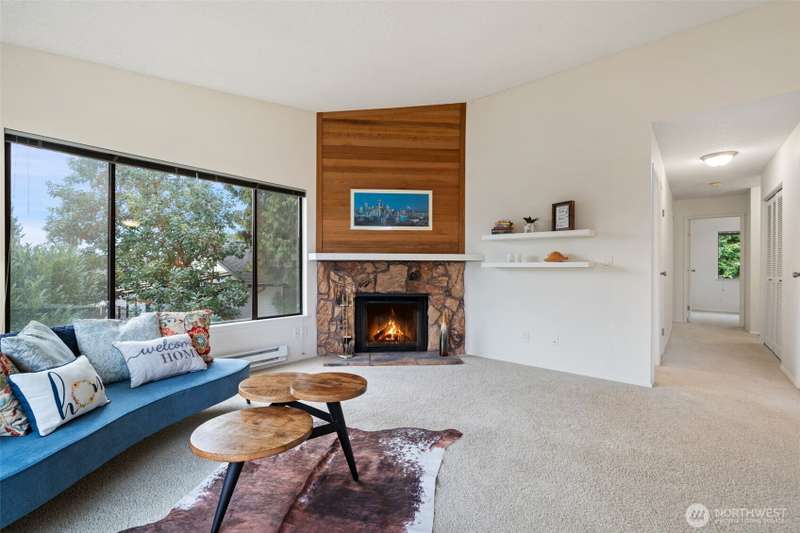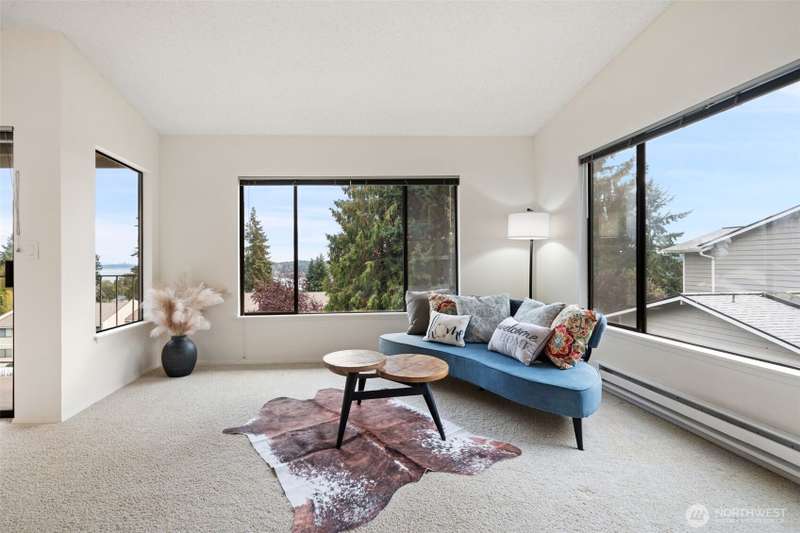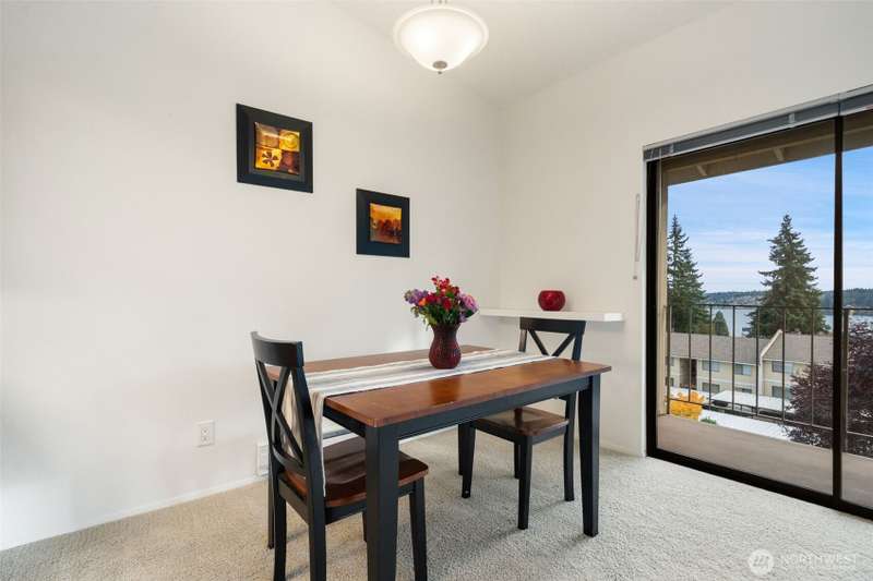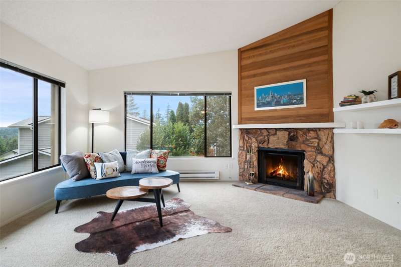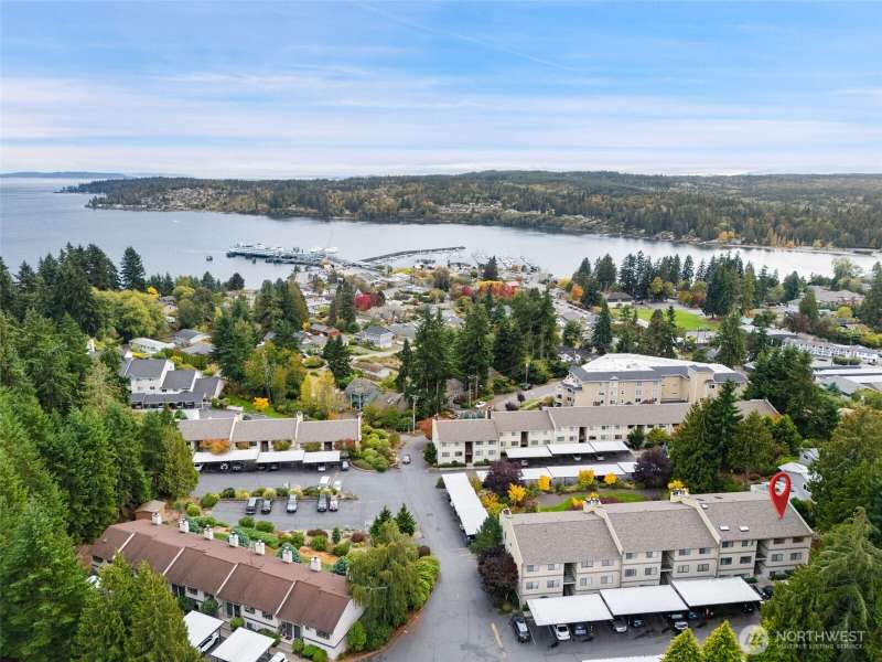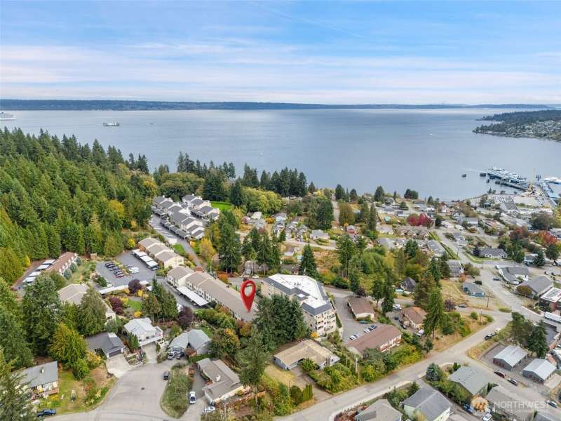 From this top floor end unit, you will enjoy fabulous views of Puget Sound, Mt. Rainier, & the Seattle Skyline. Watch the ferries dock right from your living room! The largest floor plan in the quiet KBVE community (954 SF), this 2BR/2BA home features vaulted ceilings, a modern kitchen with ample storage, abundant windows, cozy stone fireplace, and a deck for enjoying the scenic vistas. A rare west-facing window fills the home with afternoon sun and exposure to the Olympics. Walk to shops, cafes, the beach, Village Green, library, bus lines, and ferries to Edmonds and Downtown Seattle – all offering the perfect blend of convenience, community, and Northwest beauty.