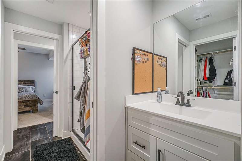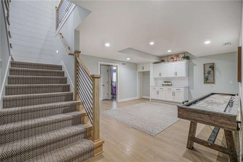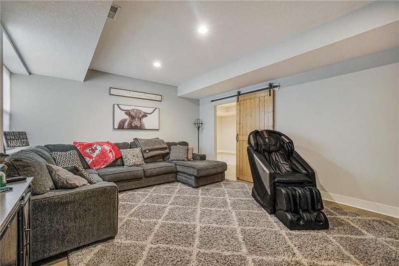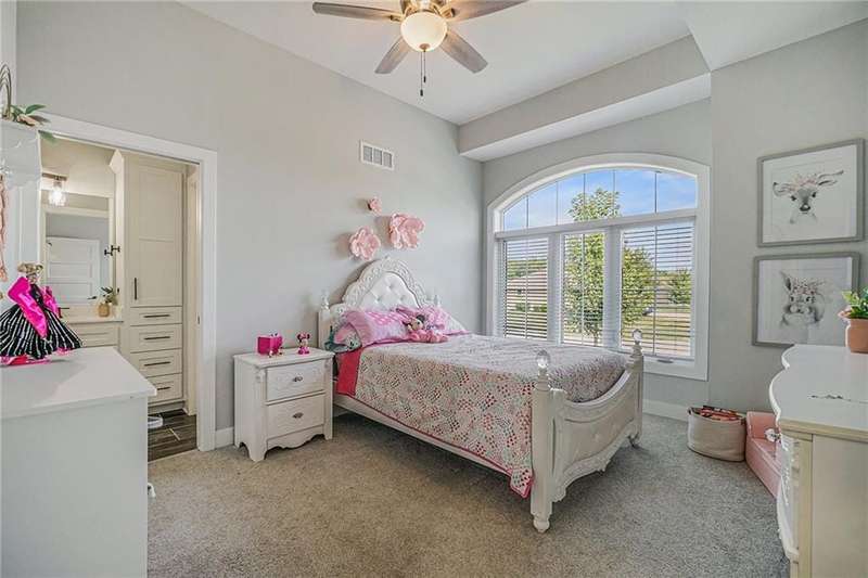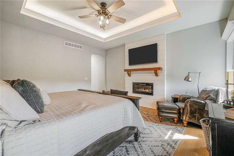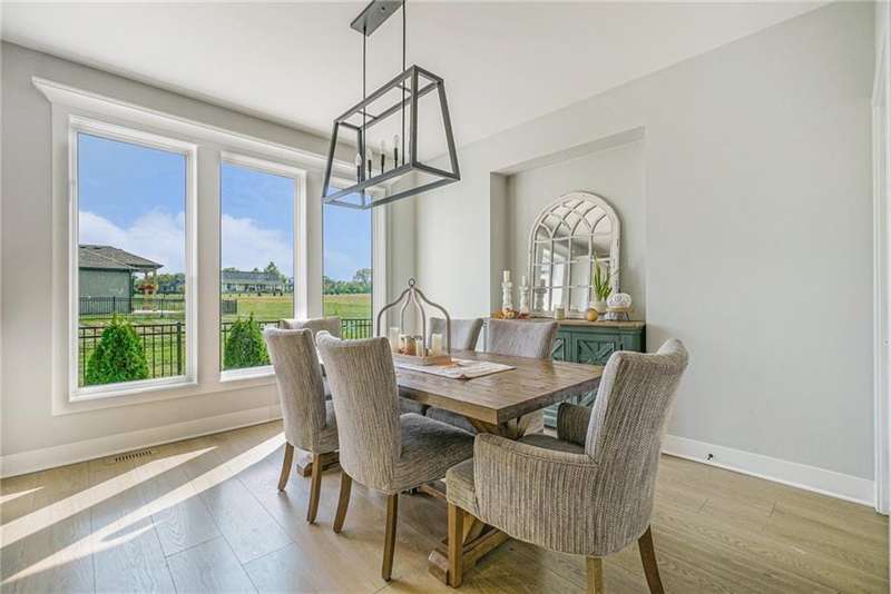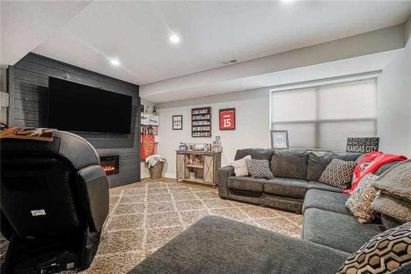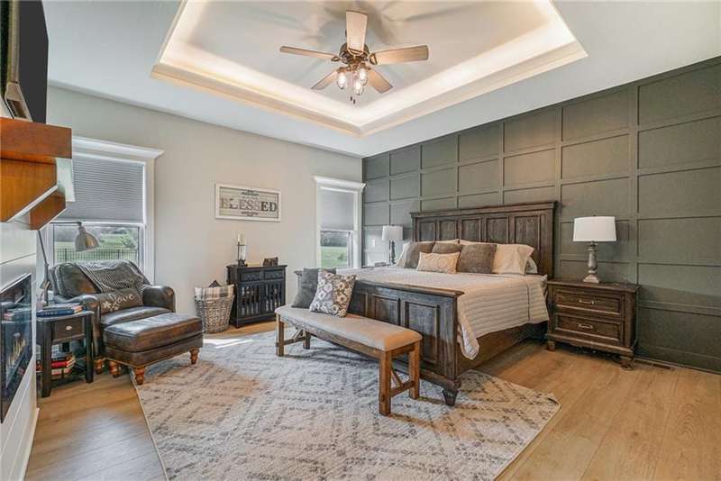 Beautiful 5-bedroom, 4.5-bath reverse 1.5-story home in the popular Shadow Glen of Peculiar. Sitting on 1 acre & backing to open farmland, this tastefully modern home, framed in 2x6 construction, features a fenced portion perfect for kids, pets, or a pool. The oversized 3-car garage with high ceilings includes a tandem bay for storage, a workshop, or even a golf simulator, plus a 40+ ft pad with a 50-amp connection for an RV or trailer.Inside, light, modern tones leading to a spacious open living, kitchen, & dining area. Living room showcases a stacked stone fireplace with custom shelving & cabinets. Chefs kitchen boasts a grand island, custom cabinetry, gas cooktop, double ovens, farm sink, & a large pantry with beverage fridge. Step outside to a covered deck with a stone fireplace & an expanded patio that connects to the garage & driveway.Main-level primary suite offers a spa-like bath with double vanity, tiled walk-in shower, & laundry access through the walk-in closet. Laundry room equipped with sink, cabinets & counters. A secondary bedroom with private ensuite bath & a convenient half bath complete the main level.Downstairs, enjoy a versatile flex space with a bar and space for a fridge, opening to a large media/theater room. Three generously sized bedrooms with walk-in closets & two full baths complete the lower level.Shadow Glen continues to be a perfect place to escape the city or raise a family; providing a great blend of residents. Large lots allow for privacy but still holds the feeling of community. Quick access to I49/71HWY & desirable Ray-Pec Schools.