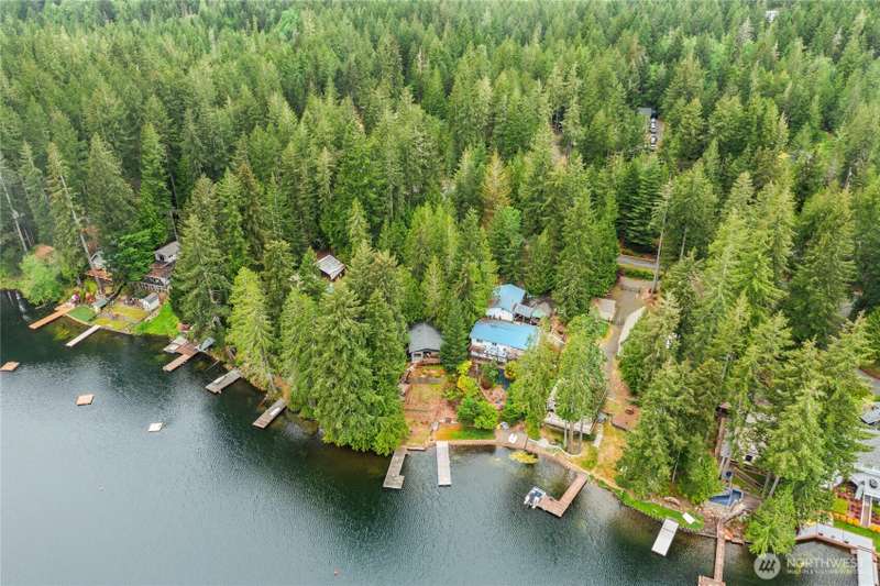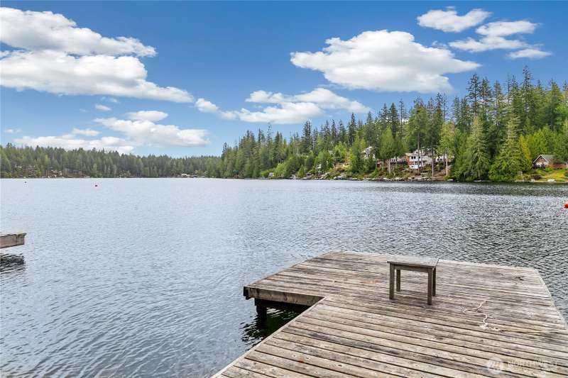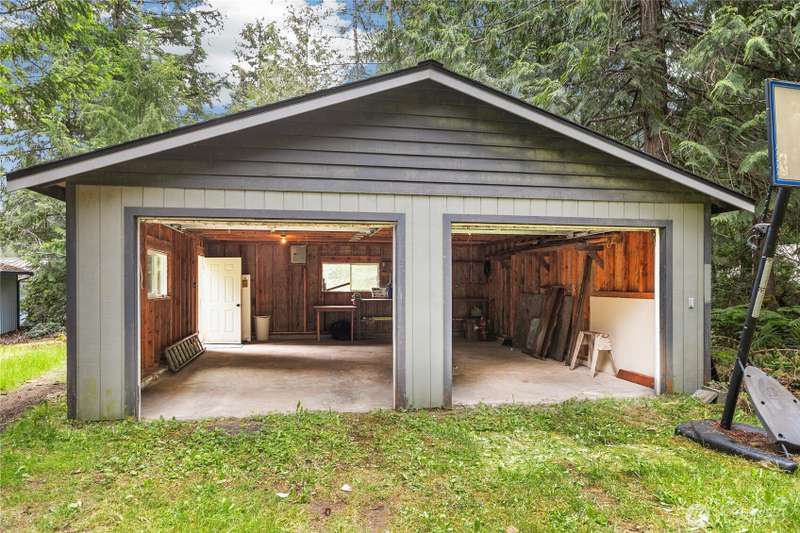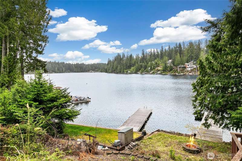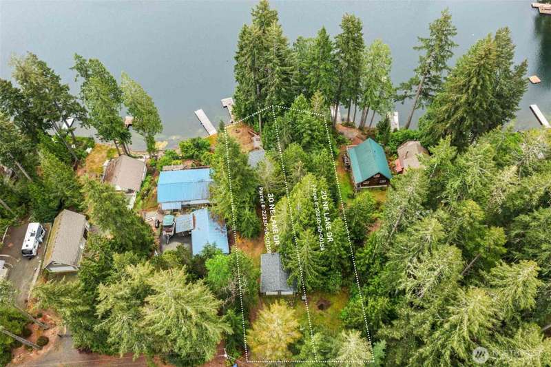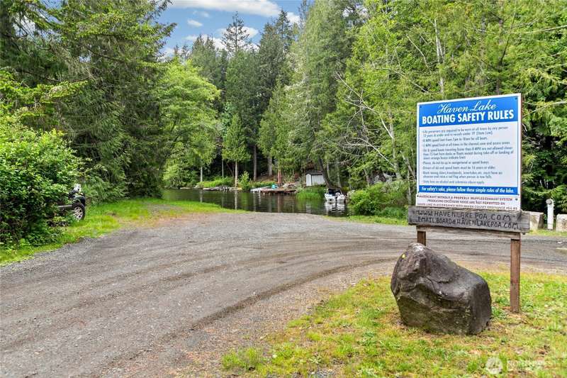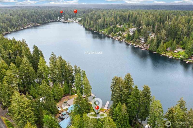 Welcome to lakefront living on beautiful Haven Lake, where you can enjoy water skiing, jet skiing, swimming, and fishing right from your backyard. This unique property includes two combined lots totaling .56 acres, offering approximately 100 feet of lakefront and your very own private dock. The charming two-bedroom cabin features a large covered wraparound deck, perfect for enjoying your morning coffee while taking in the stunning views of the lake. Both the cabin and the spacious two-car detached garage boast brand-new roofs, offering added peace of mind. The second lot includes a tear-down cabin, providing a range of possibilities and opportunities. Conveniently located close to town, shopping, trails and parks.