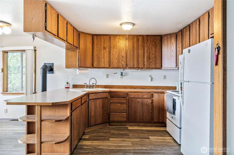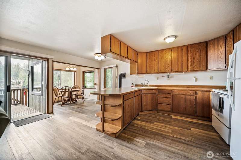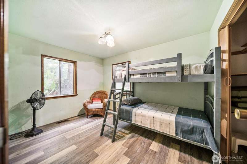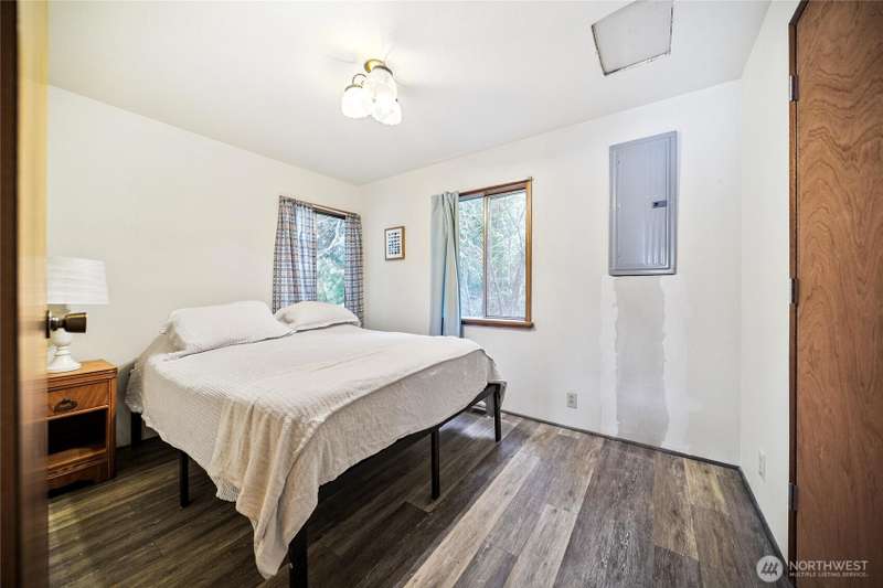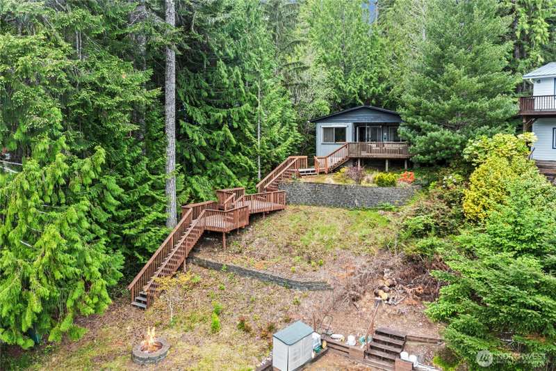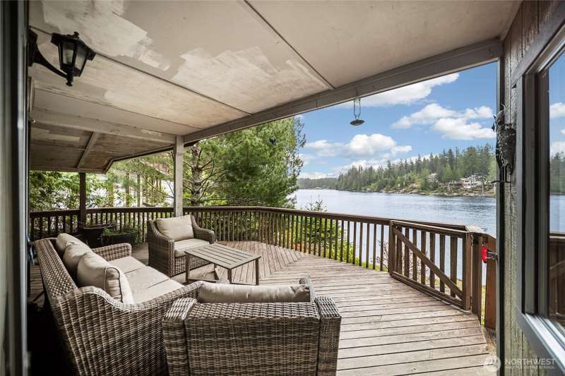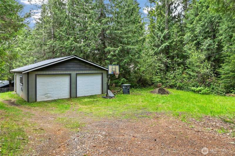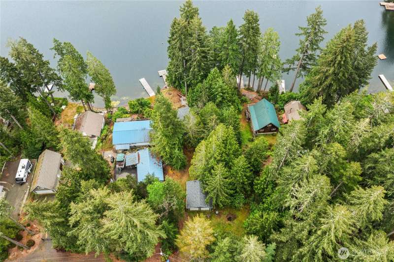 Welcome to lakefront living on beautiful Haven Lake, where you can enjoy water skiing, jet skiing, swimming, and fishing right from your backyard. This unique property includes two combined lots totaling .56 acres, offering approximately 100 feet of lakefront and your very own private dock. The charming two-bedroom cabin features a large covered wraparound deck, perfect for enjoying your morning coffee while taking in the stunning views of the lake. Both the cabin and the spacious two-car detached garage boast brand-new roofs, offering added peace of mind. The second lot includes a tear-down cabin, providing a range of possibilities and opportunities. Conveniently located close to town, shopping, trails and parks.