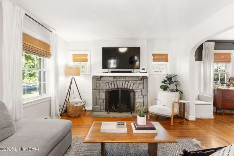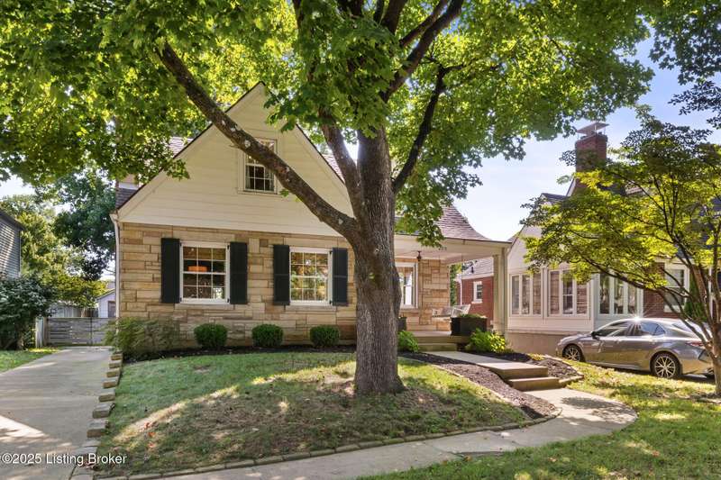 Nestled on a tree-lined street in Saint Matthews, this timeless stone Cape Cod blends classic charm with modern updates. Thoughtfully renovated and well-maintained, the home is just minutes from favorite restaurants, shopping, Seneca Park, hospitals, and expressways—an ideal location for convenience and lifestyle. Inside, you'll find four bedrooms and three full baths, including a spacious first-floor primary suite. On the first floor, beautiful hardwood floors, detailed trim work, and an original stone fireplace with gas logs highlight the home's character, while on the second floor, a loft provides a flexible space perfect for a play area, office, or reading nook. The basement, complete with egress, offers abundant storage, laundry, and the potential to be finished for additional living space. Outdoors, the fully fenced backyard is shaded and private and features the original garage for added storage. This Saint Matthews gem offers a perfect balance of historic charm, modern comfort, and unbeatable location.