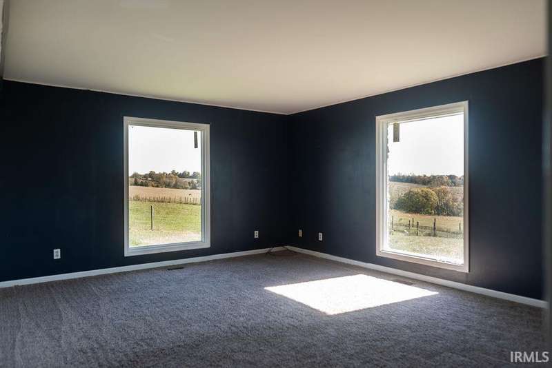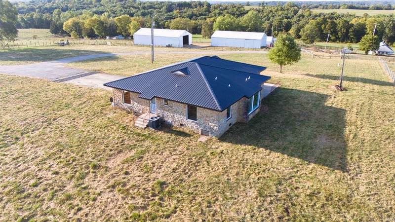 WELCOME HOME to your charming mini-farm on approximately 26 acres of serene countryside, and ample barns and garages, creating a perfect turn-key ranch experience! Perched at the highest point of your property, this spacious TWO-bedroom, TWO-bathroom home provides sweeping views of rolling pastures, where your horses and cattle can roam freely. Whether arriving through your TWO-car attached garage or stepping up to your front door, you’ll be greeted by breathtaking sunrises and sunsets. Inside, the expansive living area with floor-to-ceiling windows welcomes you and flows seamlessly into the kitchen. Down the hall, your master suite features generous closet space, built-in storage, and a chic, retro full bathroom. The second bedroom and its accompanying full bathroom are conveniently located across the hall. Additionally, a mudroom/laundry room sits between the bedrooms with a backdoor for easy outdoor access. This home is a delightful blend of vintage charm and modern convenience, including a central vacuum system. Outdoors, the property boasts expansive pastures for your animals, along with three large outbuildings (81'x48' and two 58'x37' structures) equipped with power and water, offering ample space for all your farming needs. Utility averages are Duke (main house $180/month) and North Lawrence Water ($29.95 lowest/month).