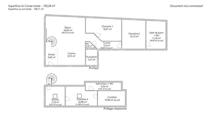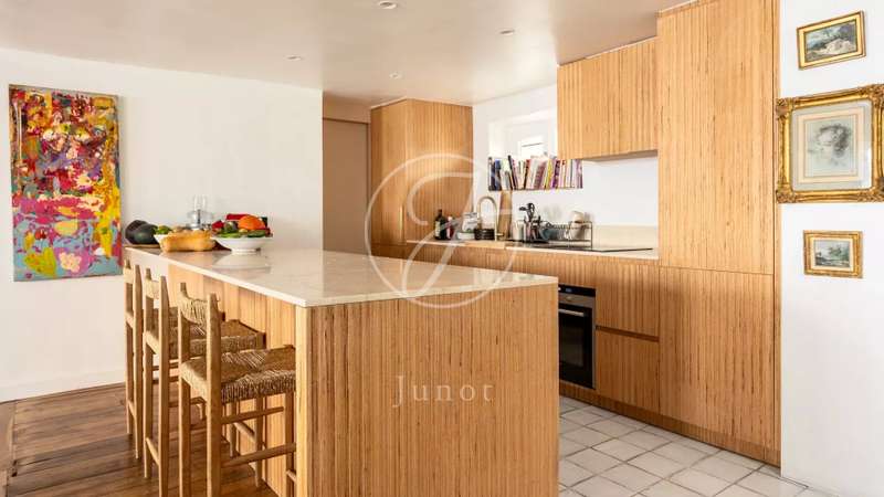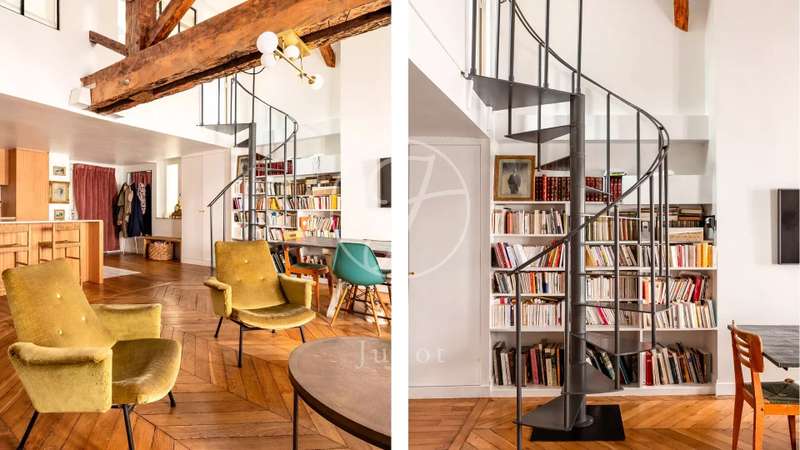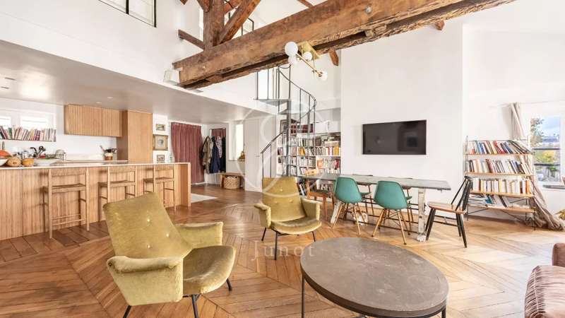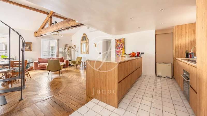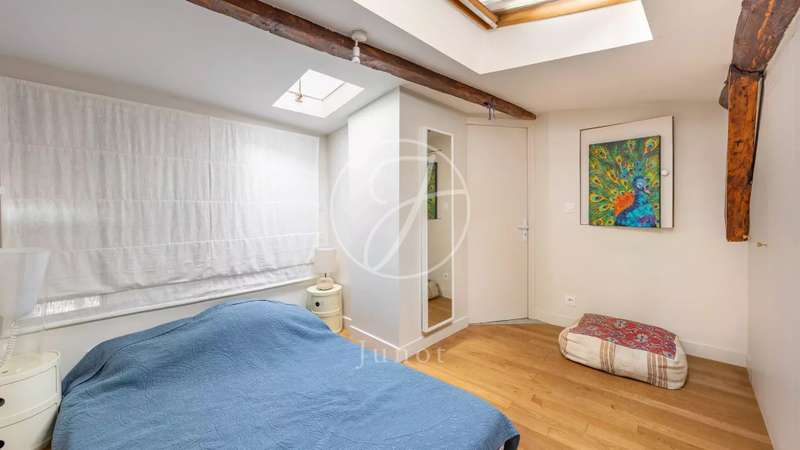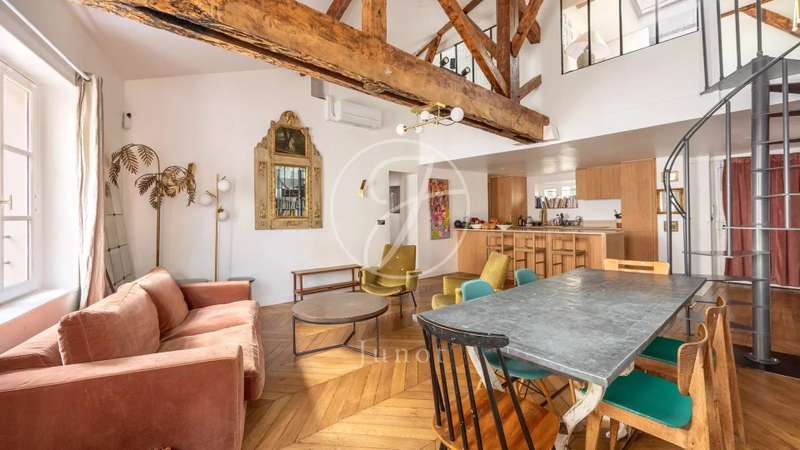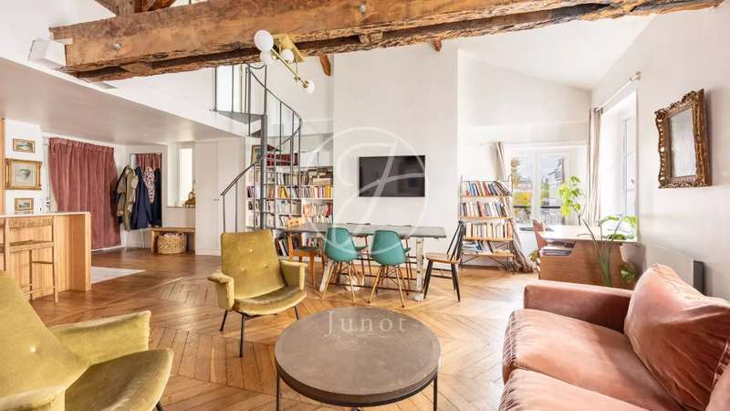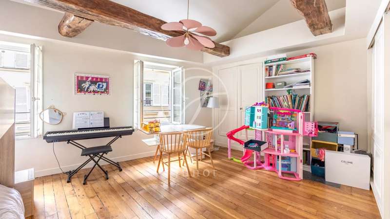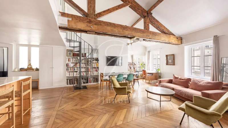 Ideally located rue de Babylone, between Le Bon Marché, La Pagode and Les Invalides, very attractive duplex apartment on the third and top floor, 148.1 sqm floor area and 125.24 sqm Carrez law. In perfect condition, this apartment comprises an entrance hall, a cathedral-shaped living room with a 42m² open-plan fitted kitchen, two spacious master bedrooms, a bathroom with toilet, a guest toilet and a laundry room. Upstairs, a mezzanine office, a bedroom and a shower room with toilet. In absolute peace and quiet, this apartment boasts old-world charm: exposed beams, herringbone parquet flooring and high ceilings.