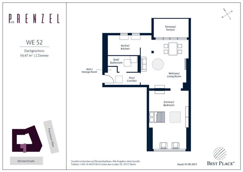 Living in the Helmholtzkiez! The classic Wilhelminian style corner house Prenzel175 was built in 1908 as an imposing 4-story building, consisting of front house and side wing. Bay windows, balconies and a staircase with beautiful historic details give the residential and commercial building a special charm. Everything breathes the epoch around 1900! The total of 48 residential units of the "Prenzel175" have 1 to 6 rooms as well as 7 commercial spaces on the first floor with generous living spaces of approx. 43 to 162 m². Almost all residential units are equipped with a balcony or terrace. Particularly nice: The southeast orientation ensures bright, light-flooded rooms. Whether for singles, couples or families - perfect for all who want to live quietly and at the same time close to the center in a well-situated family district.