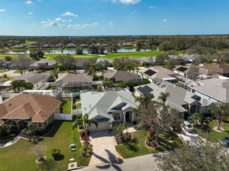 What if you could find a beautiful home that rivals a model home, located in a friendly, established neighborhood with NO CDD fee and a LOW HOA fee (only $500 a year)? An upgraded home, with mature landscaping, and a beautiful private pool nestled in a fenced backyard oasis situated on a low-traffic, side-street? Meet your new dream home! As soon as you walk in, you are greeted at once by its beauty. Walk through the front door and you are welcomed by the open floor plan with a view of the lanai and pool through the sliding glass doors. The heart of the home, the centrally located, GOURMET KITCHEN is well-appointed with an extra-large NATURAL GAS KITCHENAID RANGE, CENTER ISLAND with SOUS-CHEF SINK, an ABUNDANCE of CABINETS, a WALK-IN PANTRY and plenty of NATURAL LIGHT from the counter and ceiling-height windows. This kitchen is a chef's dream and keeps the chef in the center of the action! The spacious formal dining room, great room, and cozy dinette flank the kitchen, making this space perfect for entertaining. If you prefer to expand the party outdoors, the adjoining lanai welcomes you with its SPARKLING POOL and comfy seating areas. The house features a SPLIT FLOOR PLAN with the two guest bedrooms on one side of the house and the primary bedroom suite on the opposite side. The PRIMARY has WALK-THRU ACCESS via the EN SUITE BATH, directly into the HOME OFFICE - a perfect arrangement for anyone who works from home. Not only is this home beautifully appointed, IMPORTANT, HIGH VALUE IMPROVEMENTS have been completed by the current owners over the past 3 years. Most notable are the NEW ROOF, NEW HVAC, and a COMPLETE HURRICANE PROTECTION SYSTEM along with a new SUPPLEMENTARY REFRIGERATOR in the garage, a NEW GARBAGE DISPOSAL, and NEW FLOORING in the Primary Bedroom. Very recently, NEW PLANTINGS and a DOG RUN have been added to the FENCED-IN BACKYARD. Still want more? If you golf, but don't want to waste your money on paying high fees to live in a GOLF COMMUNITY, this is the ideal place to call home. The Links at Greenfield Plantation encircles this community, buffering it from the surrounding area. Yet it does not affect the cost of living here because The Links is a privately owned, public course that OFFERS PAY-FOR-PLAY. IF YOU DON'T WANT TO GOLF, IT COSTS YOU NOTHING! An elementary and middle SCHOOL are on the edge of this community and can be easily accessed via sidewalk without leaving the community. Additionally, living here gives you NEXT-DOOR PROXIMITY TO LAKEWOOD RANCH and all its amenities. It is only two miles off I-75 providing access to shopping, services, entertainment, recreation, and numerous restaurants - not to mention - the Gulf Coast beaches! For your peace of mind, the sellers are also including a COMPLIMENTARY HOME WARRANTY!
