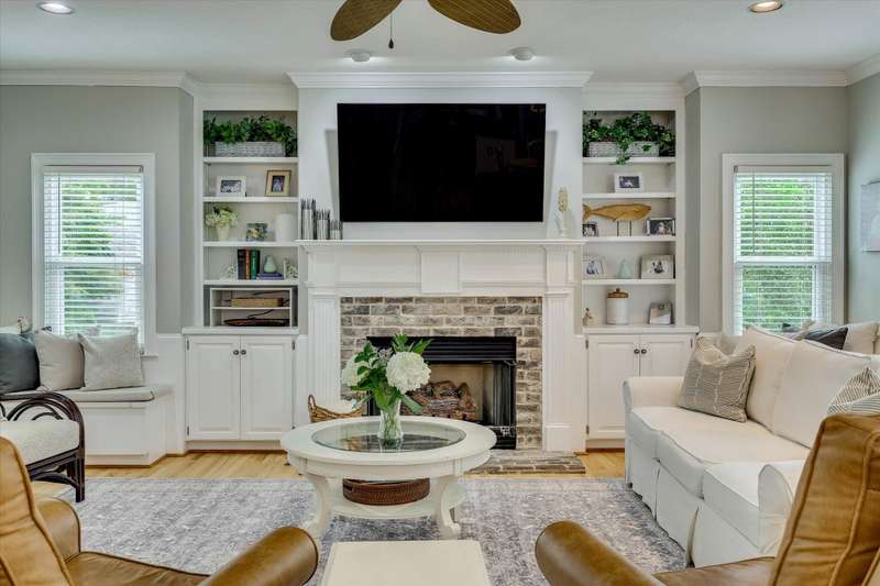 Rare Find! Located in Aiken's premier gated, golf-course community, this stunning 4BR, 3.5 BA is tucked away at the end of the cul-de-sac and sits proudly on the tree-lined green of #14 on the Jones course, which offers glimpses of golf while maintaining privacy. This prime location lends the feel of a private park and goes hand-in-hand with Aiken's natural beauty and love of all things golf-related. The expansive yard is fully fenced with multiple gated access points and offers privacy, tranquility, and plenty of room to entertain or add a pool. The grand 6-light arched double door welcomes you to the 2-story foyer and sets the expectation for this home, which does not disappoint. There are timeless finishes and thoughtful touches throughout. Beautiful hardwoods extend throughout the main living spaces, and every room has attention to detail. A formal living room features a board and batten wall and flows into the family room. Pocket French doors offer the best of both worlds, allowing for an open space for entertaining or the ability to truly make separate spaces, all the while allowing the abundant natural light into both rooms. The family room is both cozy and functional, offering a gas fireplace flanked with custom built-ins, wainscotting, and charming window seats with hidden storage. Glass doors lead to a spacious screened porch with a soaring ceiling and trex flooring. The sunny breakfast room connects the family room to the kitchen, the heart of the home, this one is not only beautiful, but exceptionally spacious and functional. Complete with a large center island with seating, top-tier stainless steel appliances, a beverage fridge, new double ovens, two large pantries, and a tower cabinet by the built-in desk—making this a true command center of the home. Storage is never a concern in this home. The laundry room offers a large closet, a cabinet that serves as a catch-all and charging station, numerous cabinets, and a folding area. A secondary staircase is tucked behind the kitchen, offering easy access to the upper level, while a pass-through connects the kitchen to the formal dining room. The upstairs primary suite is a peaceful retreat. A spacious sitting room with custom built-ins and a second gas fireplace offers a cozy place to land at the end of the day. The bedroom area is equally generous and opens to the sitting area with French pocket doors. The hallway with his/her closets on each side lead to the spa-like bath...a luxurious escape. Three additional bedrooms offer plenty of space and charm. One guest room—conveniently located near the back staircase—offers built-in bookshelves, attic access on both sides, and a private en-suite with high-end tile and stone finishes, making it a perfect guest suite or flexible bonus room that also offers a closet that once was a castle! The backyard is a showstopper—lush, private, and expansive. The screened porch opens to the trex deck that is fresh with new railing and plumbed with natural gas for the grill. A quaint swing area sits at the back corner of the fully fenced yard that offers privacy and plenty of room to entertain or even add a pool. Every space in this home has been carefully curated to balance elegance with everyday functionality. It is move-in ready, and designed to impress at every turn.