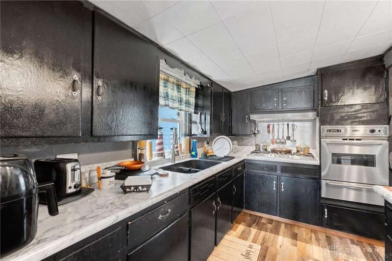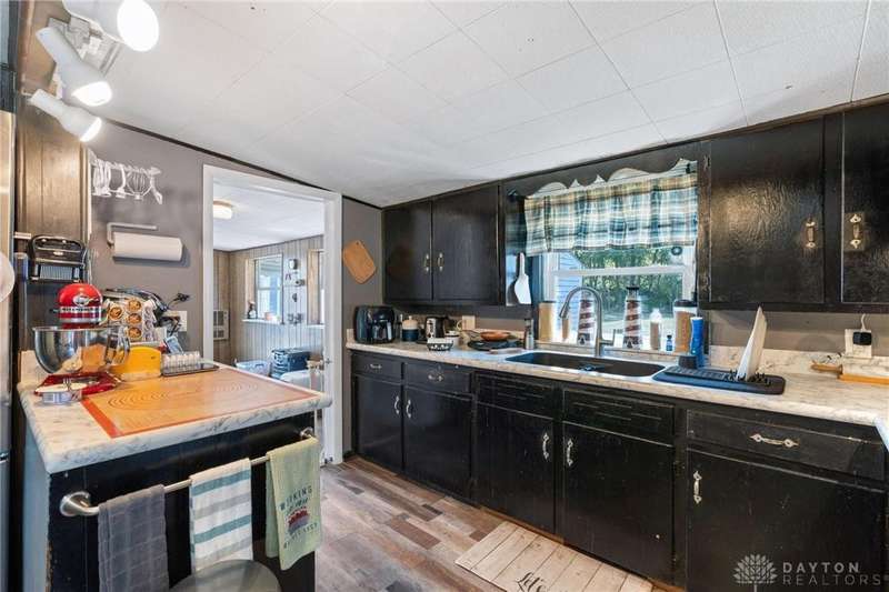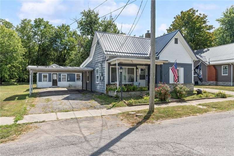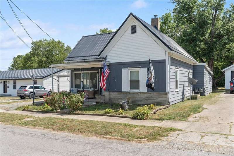 So many possibilities with this cute gem in the heart of Greenfield! With over 1,600sqft of living space, this 3 bed, 1 bath home has spacious living and sleeping areas with an open-concept kitchen and dining area. Recent upgrades include metal roof (2023), vinyl siding on front eave (2025), newer windows, HVAC, paint, and kitchen upgrades to include flooring, countertops and appliances. Off the kitchen is a large space to utilize expanding the kitchen, for storage, use as a mudroom or even an office. The unfinished basement houses the mechanicals and provides additional storage space. Outside you'll find an outbuilding where your imagination awaits you! Make this a workshop, business, apartment, etc! Once a beauty salon, this outbuilding has its own separate electric meter that can be utilized again, as well as heat, and its own bathroom! Tons of storage options at the rear of the shop as well. Enjoy morning coffee on the covered front porch and watch the kids play in the backyard under the covered shop porch. The large lot boasts no rear neighbors and has the start of a privacy fence.