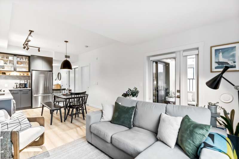 Stunning 1 bedroom, 1 bathroom in one of Tsawwassen’s more desirable communities, District Flats at Southlands in Boundary Bay. This private end unit features a modern open layout with quartz countertops, Fisher & Paykel stainless steel appliances, a gas range, wide plank flooring, and more. Additional upgrades include custom wall panelling, Mysa smart thermostats and built-in cabinet features. Full size laundry room with plenty of in-suite storage. BONUS: Two parking stalls! Fantastic location, just steps from Four Winds Beach House, The Hub, bike trails and walking distance to Centennial Beach. OPEN HOUSES: Saturday Nov 1st and Sunday Nov 2nd from 2-4pm.