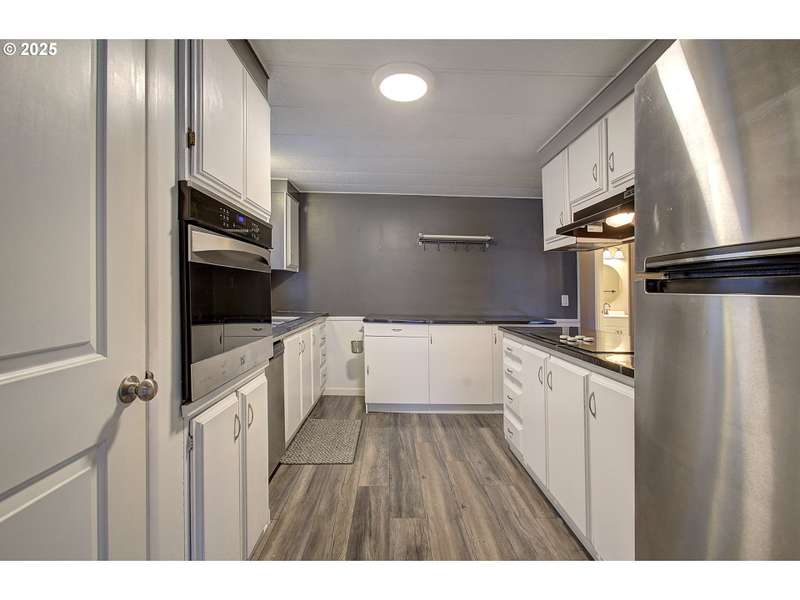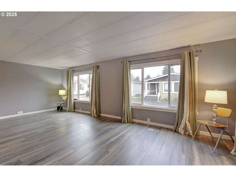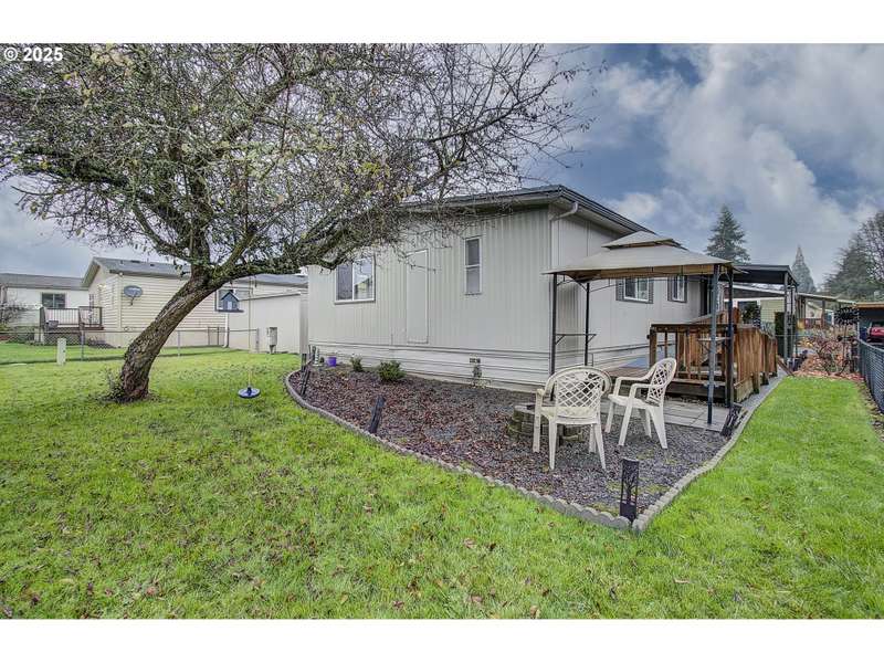 Welcome Home to this beautifully updated Two Bed, Two Bath in wonderfully well cared for 55+ community. Enjoy your own private fenced backyard lawn w/ large producing blueberry bushes, carport w/ storage shed, wheel-chair ramp, Wood Decks on both sides for access and entertainment, New laminate flooring and paint throughout, Stainless kitchen appliances w/ refrigerator & Dishwasher. Walk-in Laundry room includes washer, dryer & utility sink. Living room includes 75 inch TV w/ surround sound and console w/ fireplace heater, Forced Air Furnace with AC, Upgraded Dual-pane vinyl windows, Includes Arlo security cameras, Primary Bedroom with spacious Bathroom and walk-in shower. Enjoy neighborhood gatherings in the community center, Raised garden beds, grass area with fire-pit and pickle ball court. Just minutes to shopping, restaurants, medical & public transit.