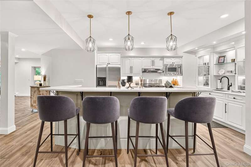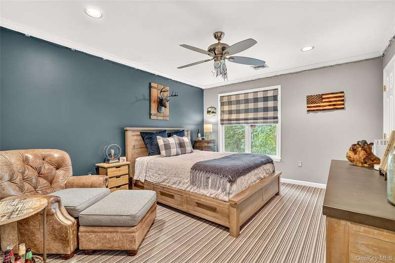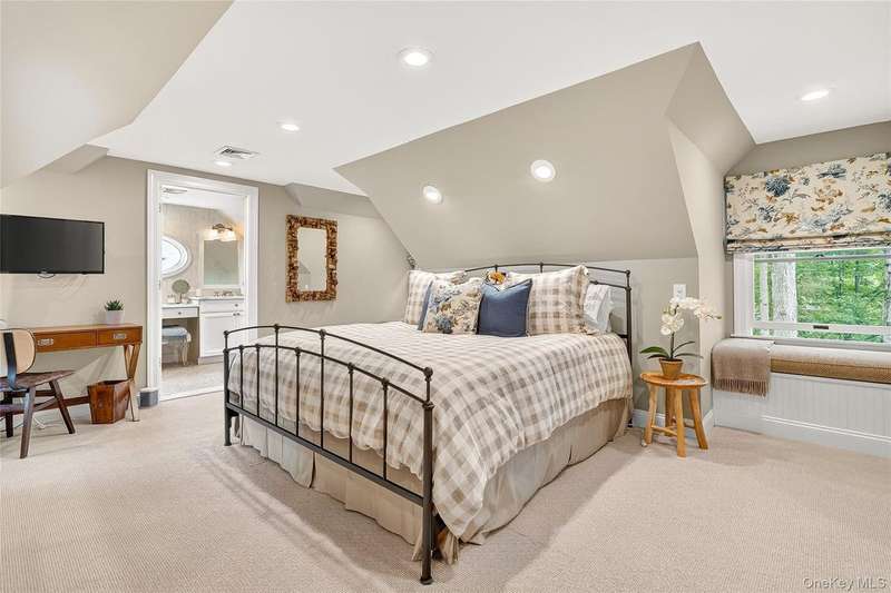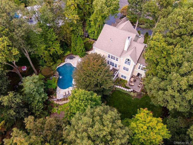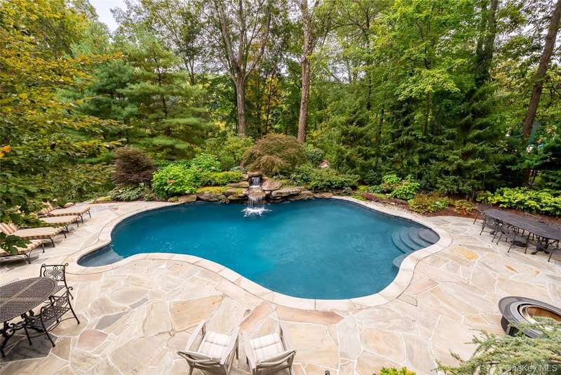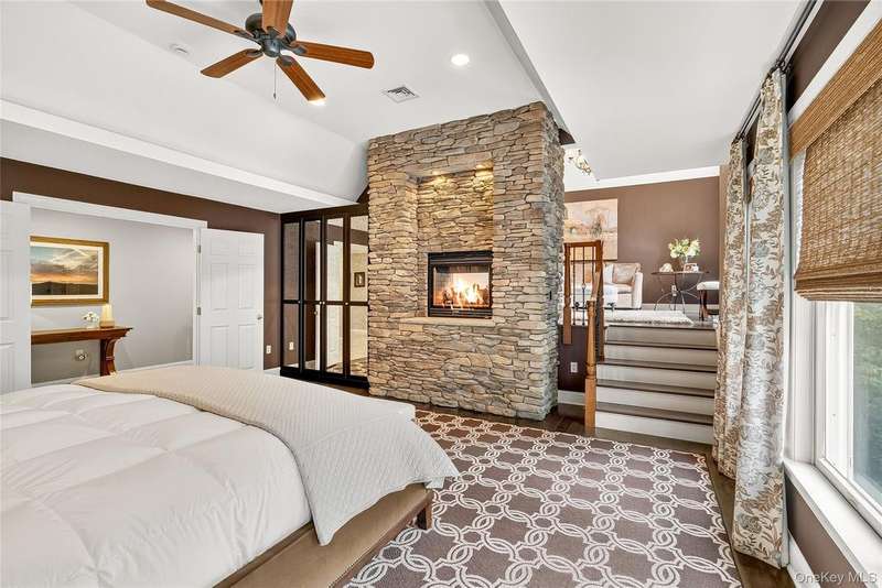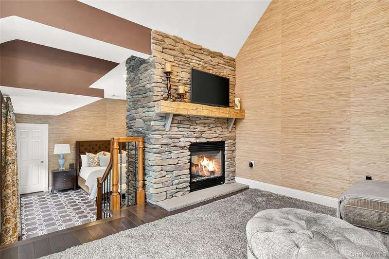 Exquisite custom built Colonial in the heart of the Hudson Valley. A truly unique property with charm and character, well designed for luxury living. This completely renovated 4 bedroom, 4.5 bath Colonial with balcony and beautiful curb appeal boasts approximately 6,750 square feet of living space, great for entertaining or as a perfect weekend home. The grand living room welcomes you with 14 foot ceilings, a stunning stone fireplace, and a shiplap ceiling. The elegant mezzanine home office adds sophistication, and the expansive formal dining room, with mahogany inlay flooring, is perfect for family gatherings. The beautiful chef's kitchen features custom solid wood cabinetry, granite countertops, a center island, high-end commercial-grade appliances including a 48 inch Wolf double oven, Sub-Zero refrigerator, and a butler's pantry with a beverage center, second sink, ice maker, and beverage fridge. The kitchen opens to a cozy family room with a second stone fireplace, shiplap walls, and large windows overlooking a spacious L-shaped deck, partially covered. The luxurious primary suite includes mahogany hardwood floors, a double sided gas fireplace, two custom walk in closets, a built-in dresser, a tray ceiling with lighting, and a private sitting room with a picture window. The en suite bathroom offers double sinks, a makeup vanity, soaking tub, seamless glass shower, and dramatic cathedral ceilings. A second primary suite features a cozy sitting room, a large bedroom with custom window seats, and a brand new full bath. The fully finished walkout basement offers high ceilings, a beautiful new second kitchen featuring a large quartz breakfast bar, updated full bath, second washer/dryer, spacious family room, dining area, new banister, and herringbone tile flooring ideal for extended family or guest quarters. Outdoor features include a newly refinished saltwater gunite pool with waterfall, Tennessee Crab Orchard stone patio, professional landscaping with lighting, circular driveway, another covered porch area, an oversized, heated 3-car garage with custom mahogany doors and electric car charger, and a covered storage area off the pool. Additional amenities include a full home generator, recessed lighting, crown moulding, alarm system, new pool cover, shed, and much more. Situated on over 3/4 of an acre of beautifully manicured property, and mature trees. Just one mile to the Palisades Parkway and only 45 minutes to NYC, this home offers the perfect combination of luxury, comfort, and convenience with nearby hiking, boating, golf, and access to the scenic 7 Lakes region. A truly one of a kind home schedule your private tour today.