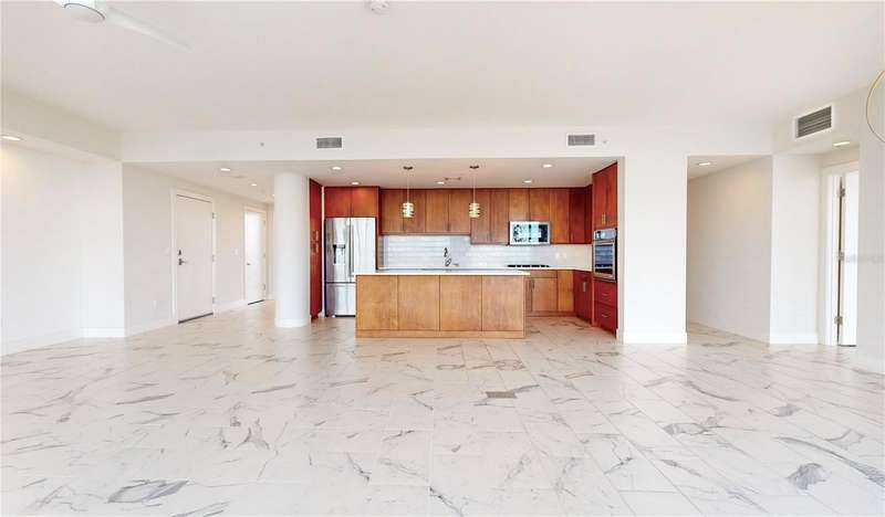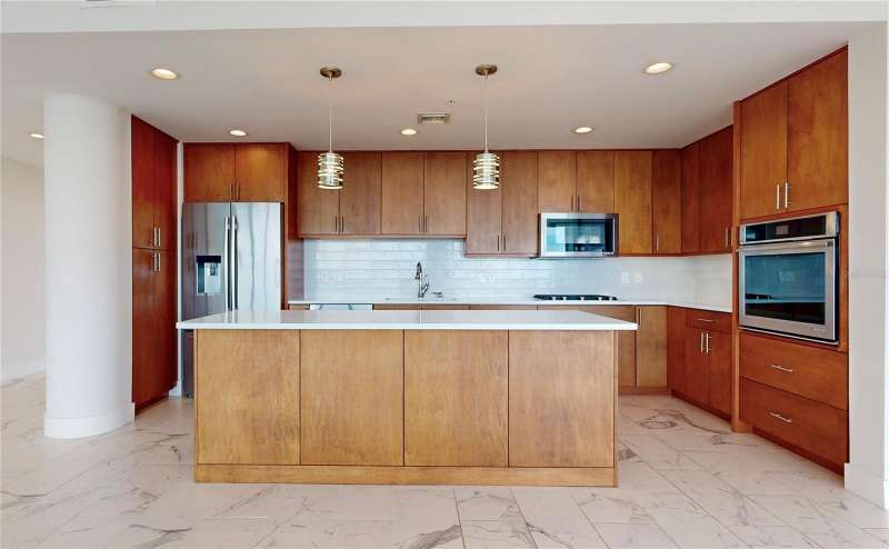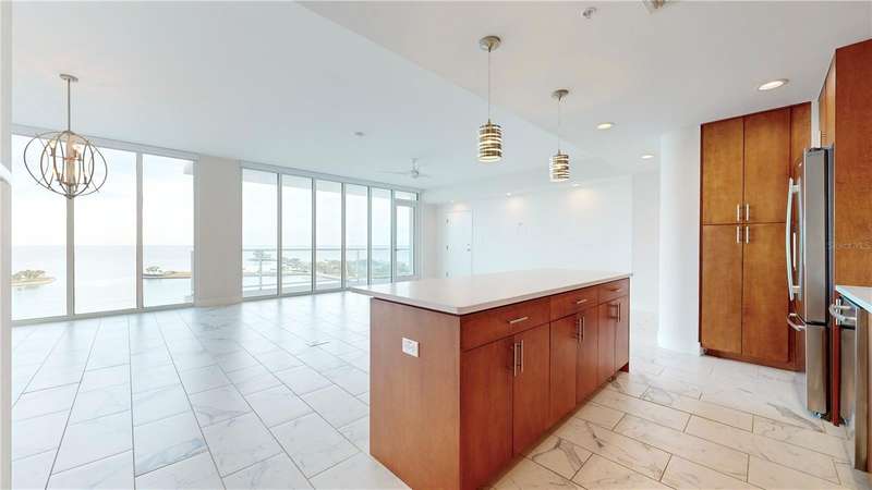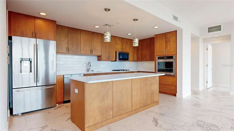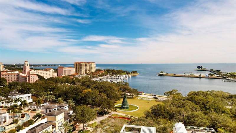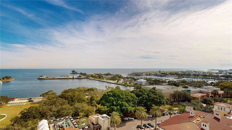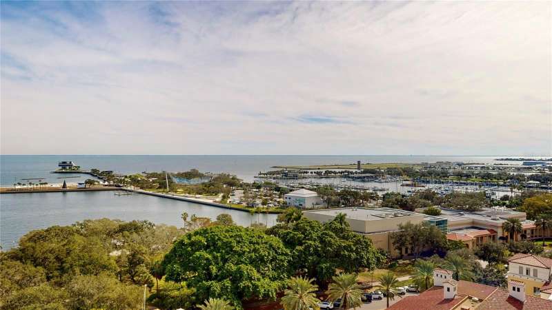 Every detail of this home, from its flawless workmanship to its thoughtful layout, sets it apart from the ordinary. If privacy is paramount to you, then welcome to your sanctuary accessible solely by your private foyer, served by an exclusive elevator. With only 29 residences in this building and no shared walls, tranquility is assured. Upon entering your abode, you're immediately captivated by panoramic views that showcase Tampa Bay, the St. Petersburg pier, and the marina. Floor-to-ceiling windows line the great room, offering an abundance of natural light and seamless indoor-outdoor living experience on your terrace, perfect for enjoying Sunshine City sunrises. The kitchen, a haven for culinary enthusiasts, showcases stainless appliances, quartz countertops, and bespoke cabinetry, complemented by a striking backsplash. This residence features a thoughtfully designed split floor plan. The primary suite offers panoramic bay views, electric blinds, a walk-in closet, and a luxurious en-suite bathroom complete with a soaking tub and dual vanities. Two additional bedrooms, one ideal for guests and the other serving as a tranquil office space, complete this remarkable home. Convenience is key with easy-to-use vehicular elevators and two dedicated parking spaces. The building amenities include a heated pool, fitness center, Rooftop Club-room, outdoor terrace with grill, and a spa. Located mere steps from an array of dining options, cafes, museums, and green spaces on Beach Drive, this residence offers the epitome of luxury living in the heart of the city. Indulge in comfort, embrace luxury, and prepare to be enamored by this extraordinary dwelling.