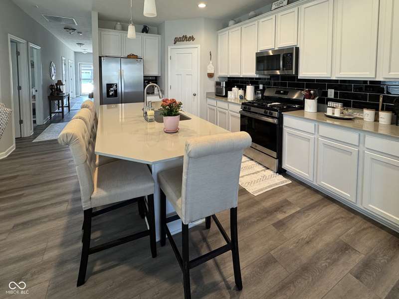 Stunning as you drive up to this magnificent home and it gets even better once you enter inside! This home looks like brand new! There have been upgrades throughout when built and more were added after the move in including the lovely covered and screened back porch, the added patio, and the lovely landscaping outside. Inside you have farmhouse doors, quartz countertops, mantel over fireplace & lovely & impressive backsplash in the amazing kitchen! Taller cabinets for additional space in the kitchen as well, and a pantry with additional shelving too! The Primary Suite is a work of art and is very large with room to accommodate all of your furniture! The Primary bathroom will have you feeling like royalty with quartz countertops, double sinks and very very large closet! Separate toilet area as well! Formal Dining Room overlooks the beautiful screened in porch w/views of the lovely, manicured grounds & green space. The lot is extra wide and you will have much more space between your neighbors with this home! There is an office at the front of this home with lots of sunlight! CLEAN CLEAN CLEAN! Hurry as this is an immaculately kept and beautiful home.