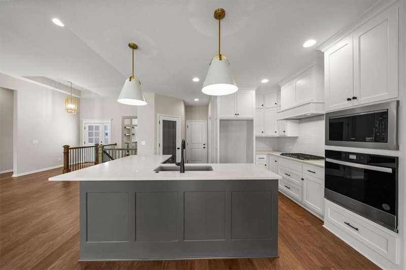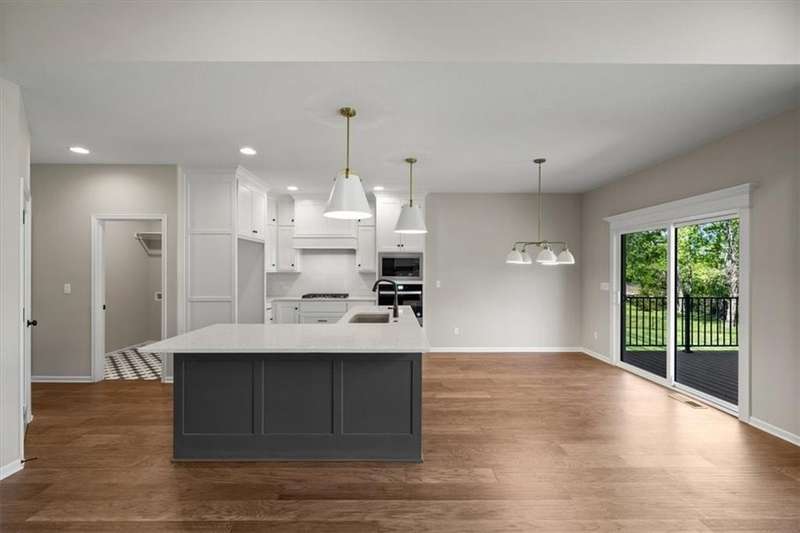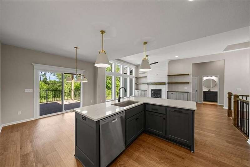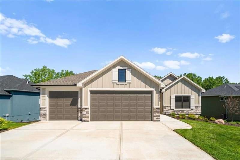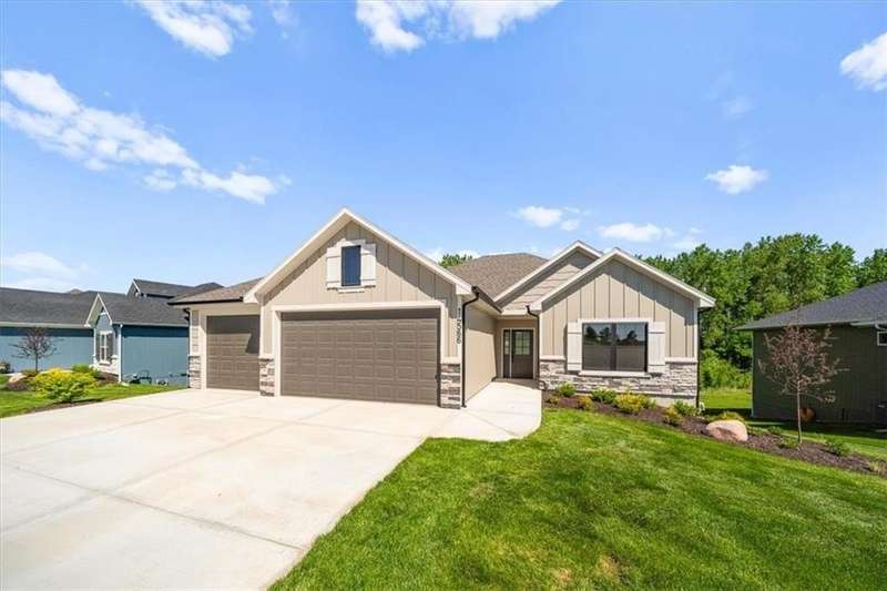 Villas Lot 3. Arista II by BC Residential Homes - Ready Now! Live in a maintenance provided Villa in a GOLF COURSE COMMUNITY!! This home is on a beautiful walkout lot that backs to trees!! Quality construction with many upgrades. The home is Energy Star 3.2 and has zoned HVAC, a 100k BTU 96% furnace variable speed, blown wall insulation of R-15, a 4 ton 16 SEER air conditioner variable speed as well as an IAQ humidistat to measure and control humidity. Bullnose corners, quartz in kitchen and all bathrooms, zero entry primary shower and back entrance, deep soaking tub in hall bath, stair lights and under cabinet lights on timers, and a covered composite deck are just a few of the features of this home. Just 10 minutes to the Legends shopping and entertainment and 30 minutes to the airport, Falcon Lakes is conveniently located on K-7 for easy highway access. Acclaimed Basehor-Linwood Schools. Monthly HOA dues include lawn maintenance, weed and feed, lawn and tree trimming as well as SNOW REMOVAL over 2 inches! This home can be ready in 30 days!