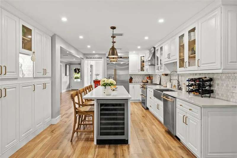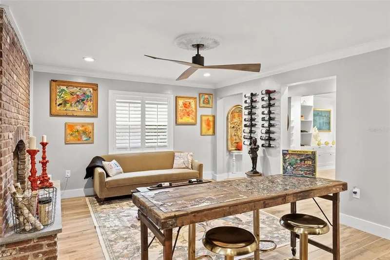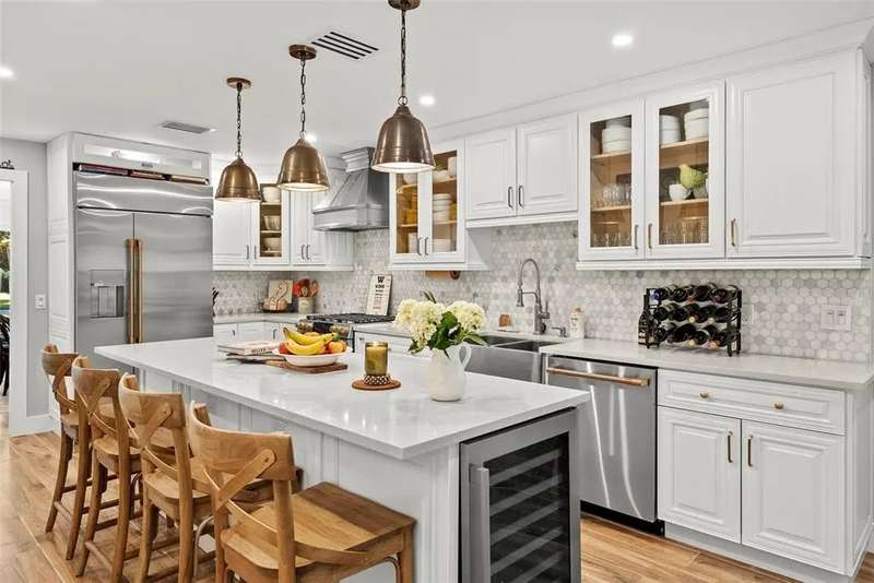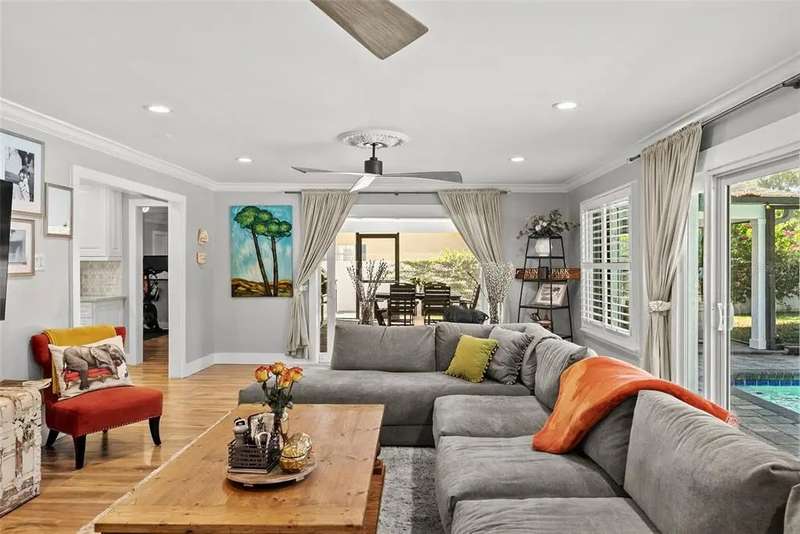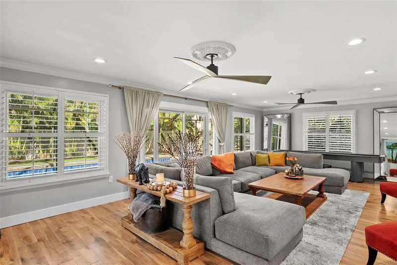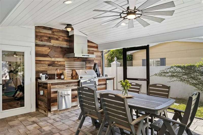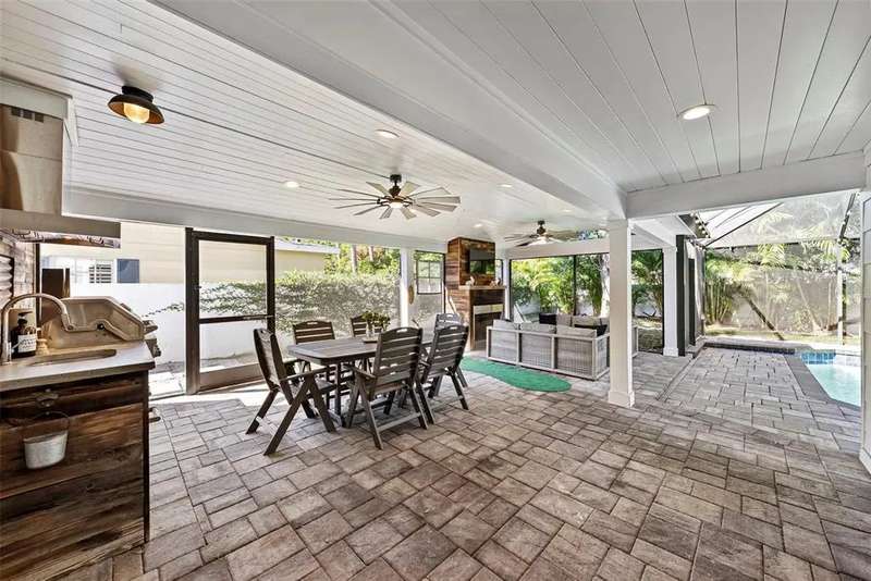 Tucked away on a quiet cul-de-sac in the heart of South Tampa, this reimagined modern farmhouse is where design and lifestyle intertwine. Beyond its classic façade lies a home that has undergone a complete transformation — a blend of timeless architecture and the art of modern living. Step inside and feel the energy of open, sun-filled spaces that invite connection and creativity. Every room flows seamlessly into the next — from the welcoming front living area (perfect for cocktails and conversation) to the expansive family room that opens effortlessly to the outdoors. Whether it’s movie night, a dinner party, or a spontaneous Sunday brunch, this home adapts to every mood and moment. At its heart is a brand-new chef’s kitchen and dedicated bar area that inspire culinary play. Outfitted with high-end GE Café appliances, a gas range, wine fridge, and generous cabinetry, it’s a space designed for both cooking and gathering. The adjacent flex room doubles beautifully as a creative studio, home gym, or vibrant workspace. Slide open the doors and step into your own backyard retreat — a reimagined entertainment oasis. The sparkling pool shimmers beneath string lights, while the paver deck, outdoor kitchen, and gas fireplace set the stage for unforgettable evenings. Grill, gather, laugh, and lounge — this is where the best memories are made. Upstairs, the private quarters balance tranquility with sophistication. The primary suite feels like a boutique escape with dual walk-in closets and a spa-worthy bath. Two guest suites share a chic Jack-and-Jill bath, and a third-floor retreat offers perfect privacy for guests, an au pair, an independent teenager or an artist in residence. Completely move-in ready with new AC systems (2025), a newer roof (2023), new pool heater (2023), gorgeous landscape lighting (2022), newer lanai (2020), plus a 110V EV charger in the garage — every detail has been considered. Within walking distance to Mabry, Coleman, and St. Mary’s schools, this home captures the art of living beautifully — where every corner invites you to entertain, create, and simply be.