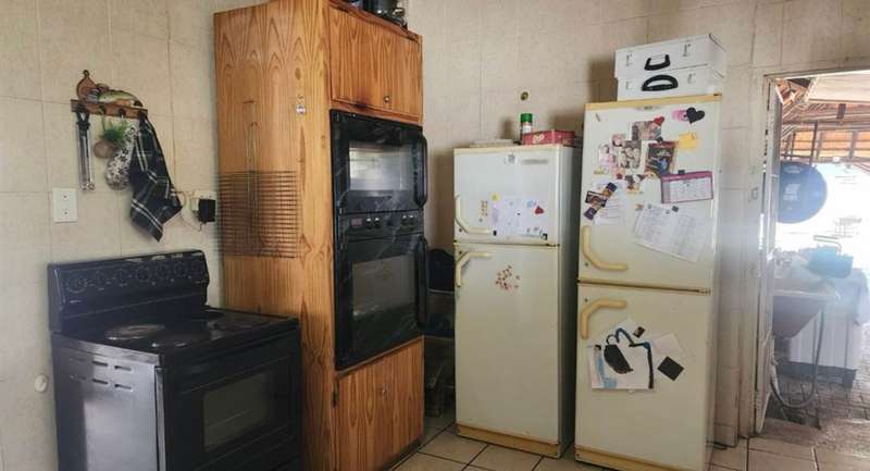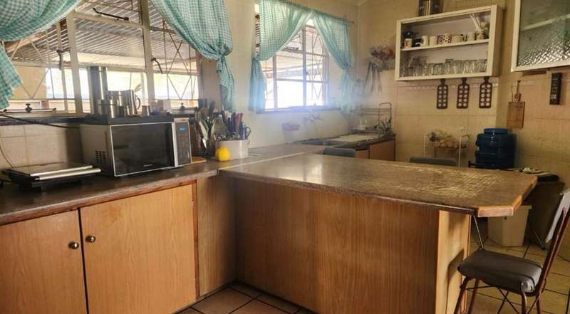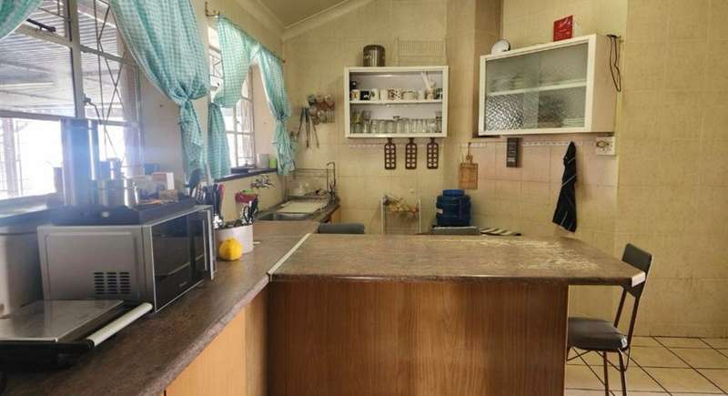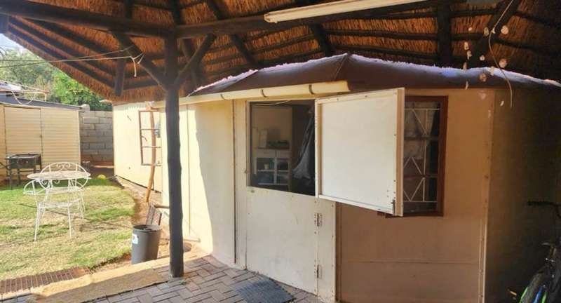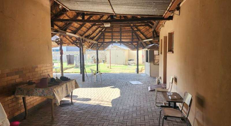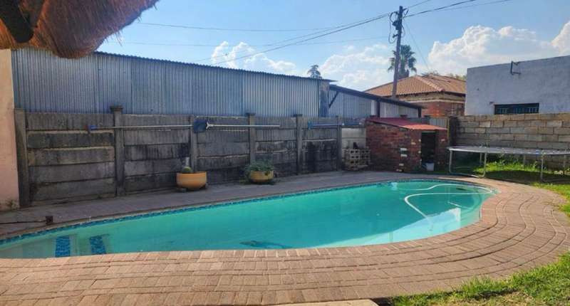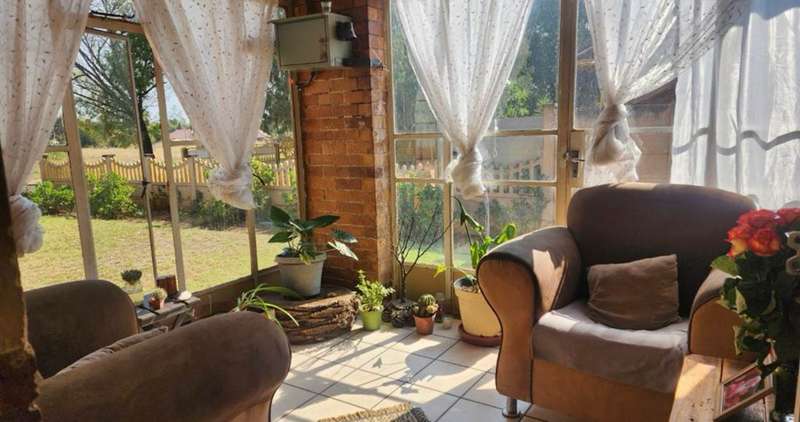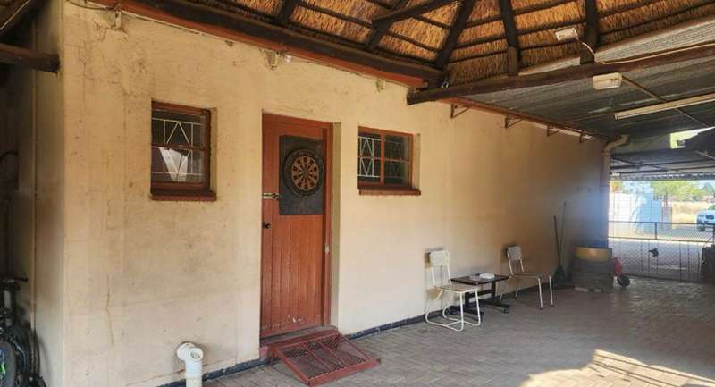 What a Bargain This house is ideal for a young couple or a first time buyer there is 3 bedrooms with cupboards one bath room a shower basin an separate toilet Kitchen lots of cupboards a breakfast nook eyelevel oven and stove Lounge with fire place and airconditioning unit Sunroom Single garage double carport Pool Borehole with irrigation Garden flat with bathroom outside building 4 Storage sheds at the back