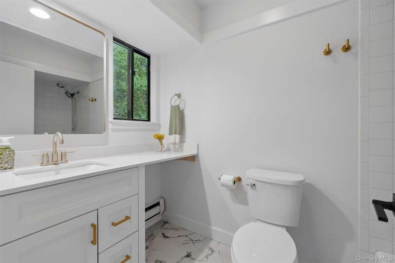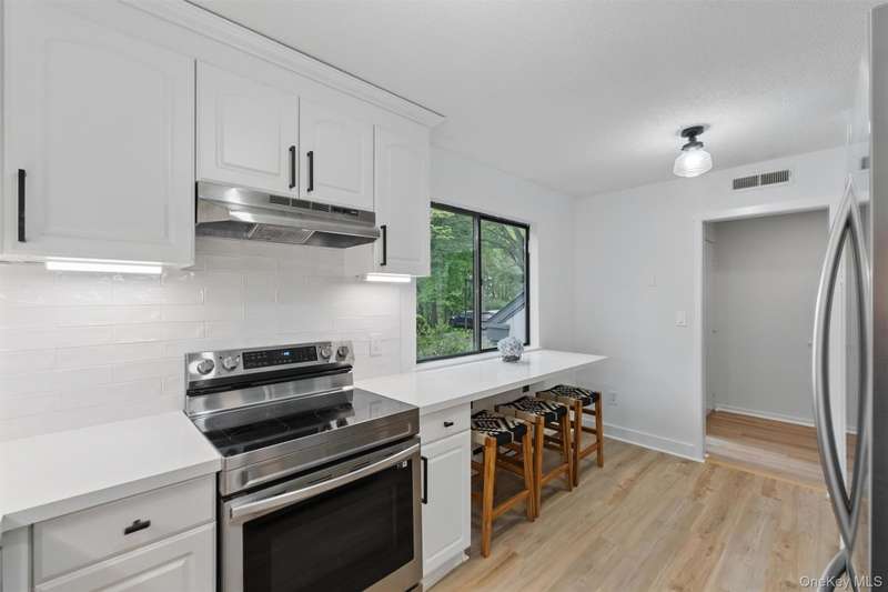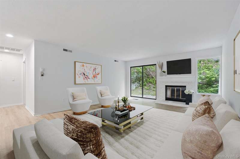Highly desired Katonah model set in a serene location with absolute privacy. Enjoy the complete renovation...just move right in! Beautiful kitchen with Quartz counter tops, tile back splash, breakfast bar and stainless steel appliances. Formal dining room off the kitchen with wall sconces makes entertaining easy or simply perfect for a quiet meal. Generously sized living room is warmed by a fireplace and has a slider to new slate patio with belgian block trim, enjoy the solitude!. Primary bedroom with renovated bath will spoil you along with second bedroom and updated full hall bath. Great Layout! Lower level offers large room for storage along with laundry facilities. Oversized Garage. New Water Heater. Roofs scheduled to be replaced in the Spring. Lots of guest parking. Close to Golf Course and Restaurant. Amenities include: Pools, Tennis Courts, Fitness Center, Clubhouse, Bacci, Jitney to Metro North and More! Enjoy the country club lifestyle...you deserve it!