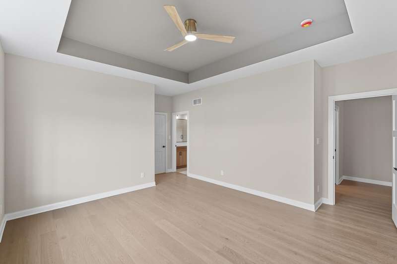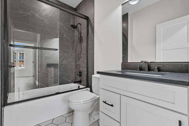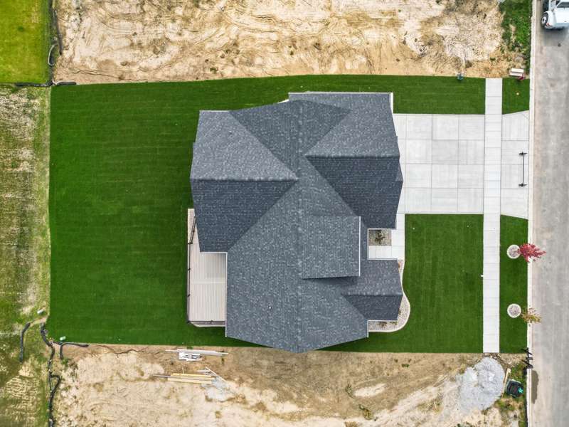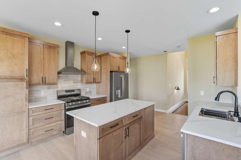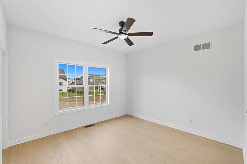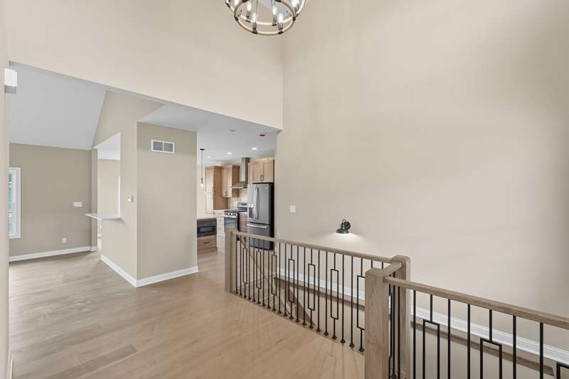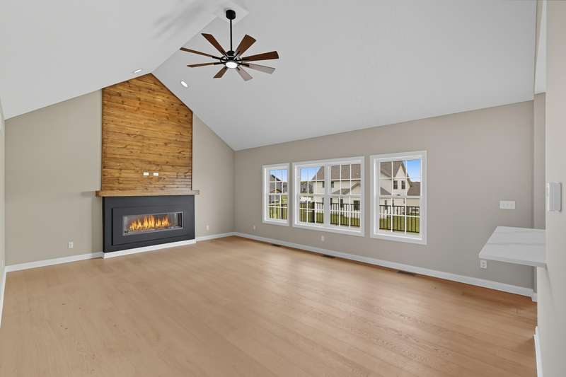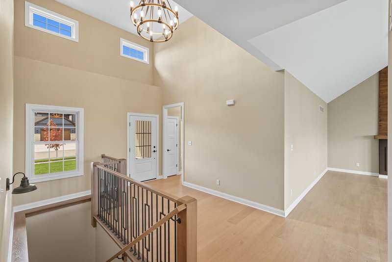 Step into this thoughtfully designed new-construction ranch, where quality and style are evident in every detail. Spanning 1,890 sq. ft, the home features engineered hardwood flooring throughout, a soaring two-story foyer with chandelier, and a bright great room with cathedral ceiling, anchored by an electric fireplace with a wood mantle. Large Andersen windows with black exterior trim fill each room with natural light. The kitchen is outfitted with a GE Slate appliance package, quartz countertops, soft-close cabinetry, and countertop seating that opens to the great room--ideal for everyday living or entertaining. You'll appreciate the convenience of a pantry cupboard with pull-out shelves, under cabinet lighting, and large workstation sink. The breakfast room leads out through sliding glass doors to the oversized composite deck. Ceiling fans throughout enhance comfort, while solid-core doors and oak stairs with a custom railing add refined touches. A main-level laundry room with sink adds convenience. Retreat to the primary suite with tray ceiling, a custom window storage bench, walk-in closet, and ensuite bathroom. The primary bath features a custom-tiled walk-in shower with bench, glass doors, and handheld sprayer, a deep soaker tub, and dual vanities. Two additional bedrooms on the main floor offer versatility, including a walk-in closet and vaulted ceilings. The second full bathroom is finished with custom tile-work and a quartz vanity top. The daylight basement has 9-ft walls, is pre-plumbed for a future bathroom, and awaits your personal finishing touches. Outdoors, enjoy a covered front porch, fully landscaped yard with irrigation, and a three-car finished, insulated garage pre-piped for a heater. A tankless water heater rounds out the modern conveniences. Every element of this home blends craftsmanship with thoughtful design, creating a space designed to live beautifully.