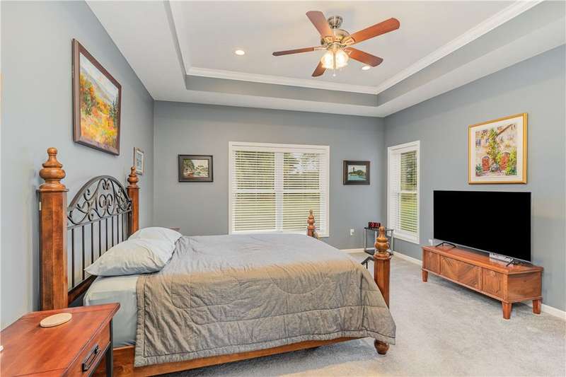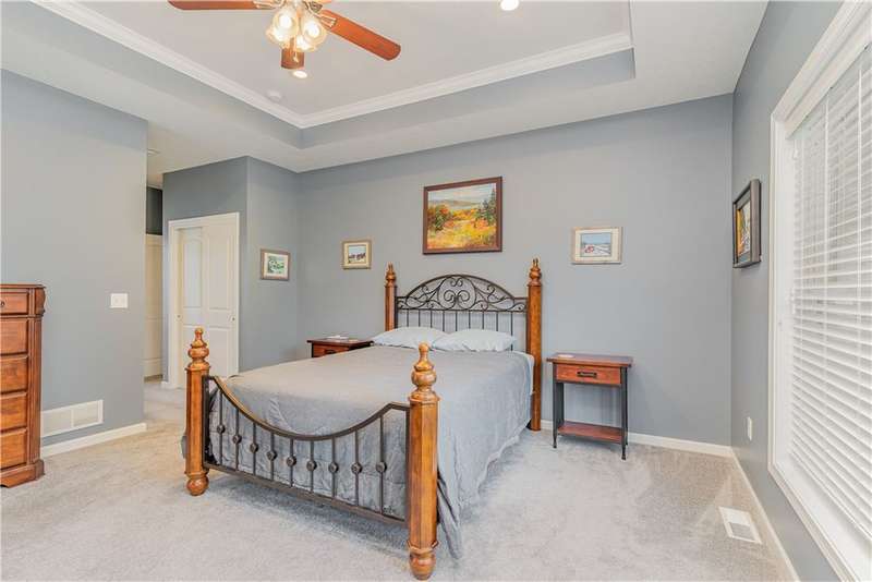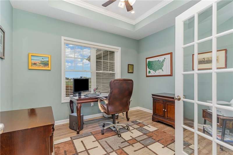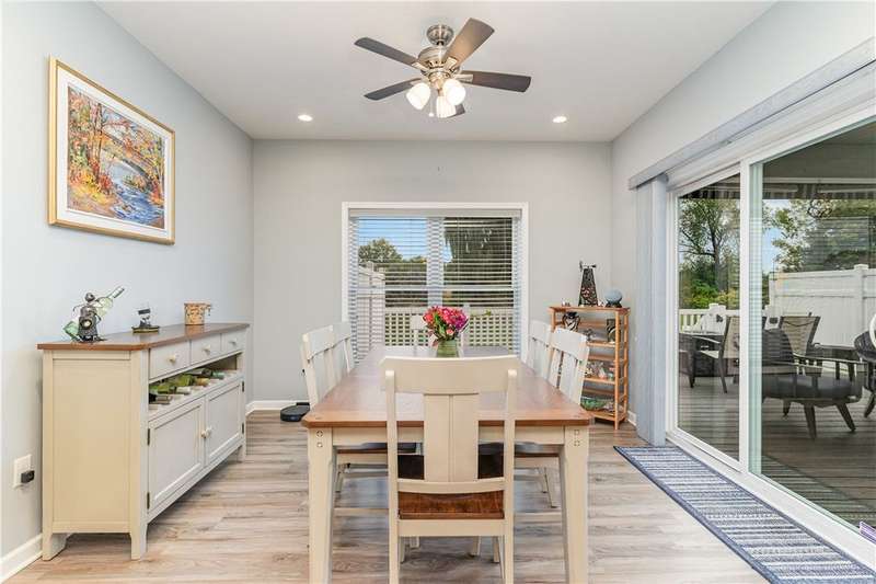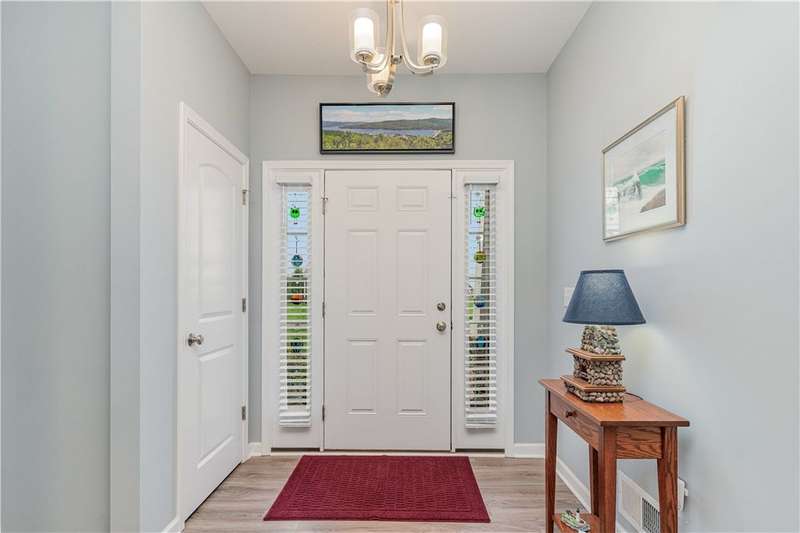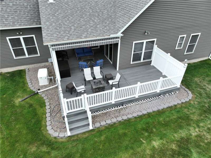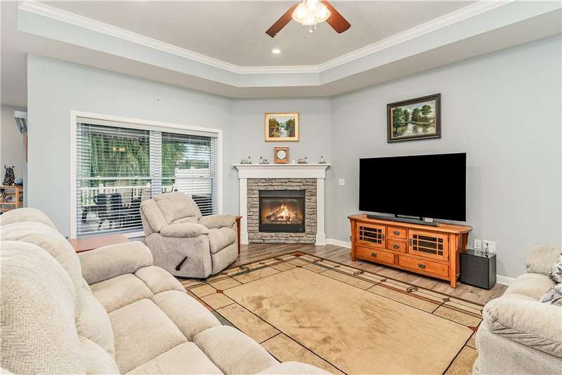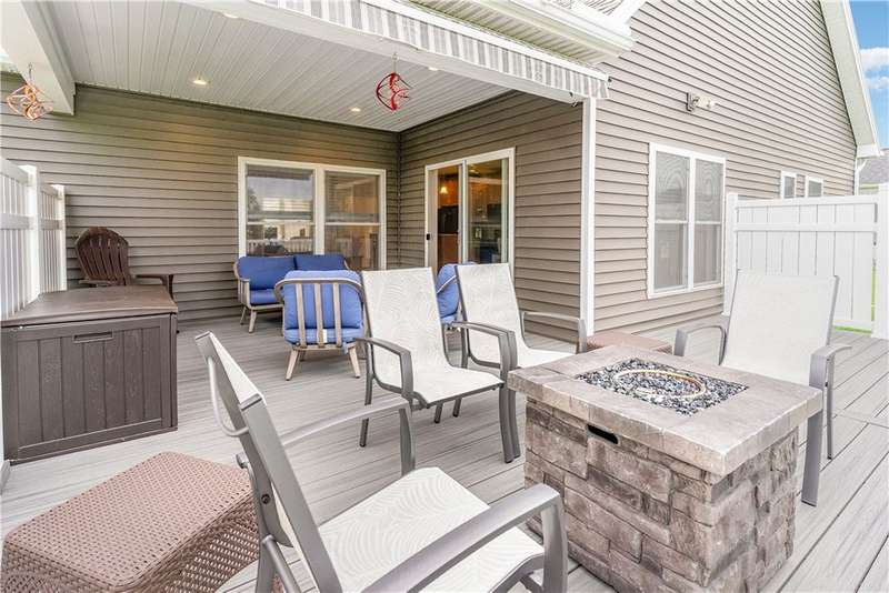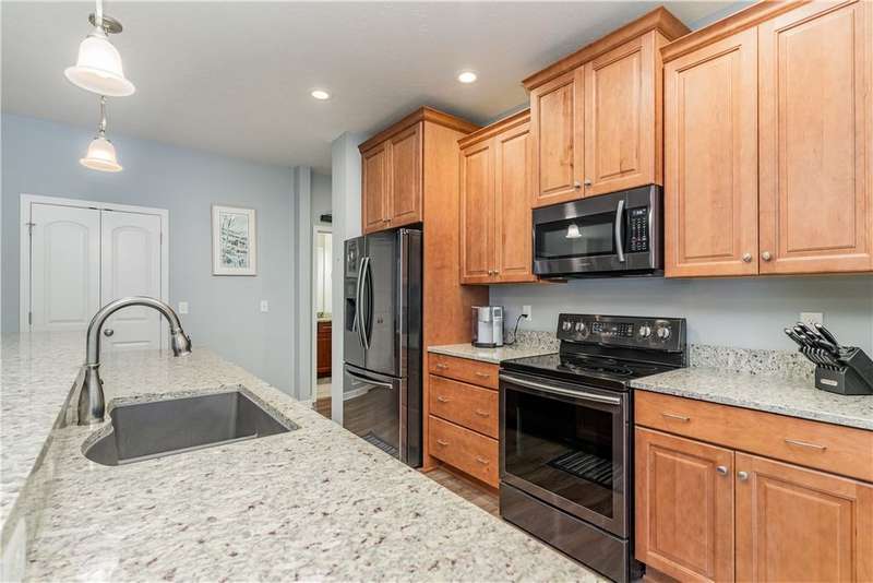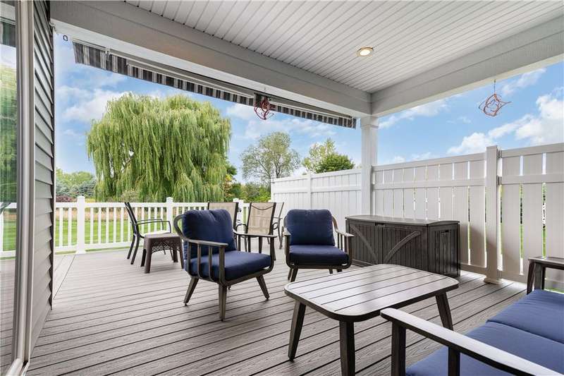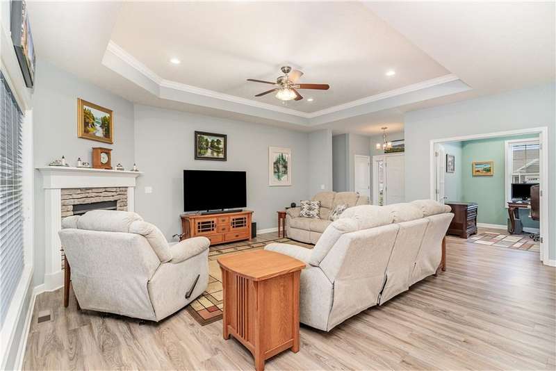 Stunning Ranch that blends modern elegance with everyday comfort! Abundant natural light highlights the beautiful LVP floors throughout. The spacious layout offers 3 bedrooms and 2.5 baths, including a luxurious primary suite with a jacuzzi tub and large walk-in closet. A flex room provides the perfect spot for an office or den. The chef's kitchen showcases gorgeous granite, a two-tier island seating 3, and sleek black stainless appliances?open to the family room with a stone-faced gas fireplace and tray ceiling. The dining area easily accommodates 10! Step outside to a sprawling TimberTech covered porch with automated awning, overlooking lush landscaping and a tree-lined backyard that connects to a walking trail. The lower level adds 1,000 sq ft of finished space?ideal for a rec room or media retreat. Complete with a $20K whole-home generator, this property offers both style and peace of mind. Close to shopping, restaurants, pickleball courts, and everything you need! No delays!