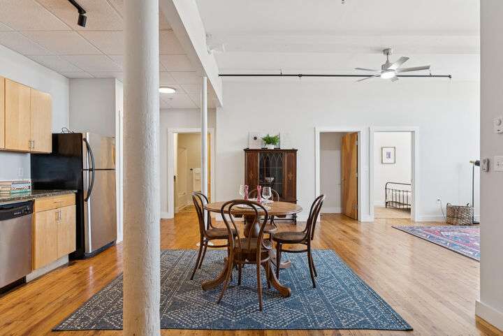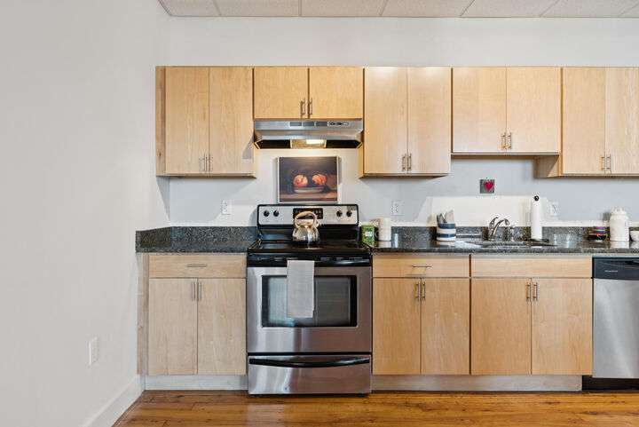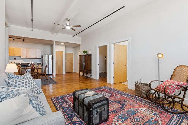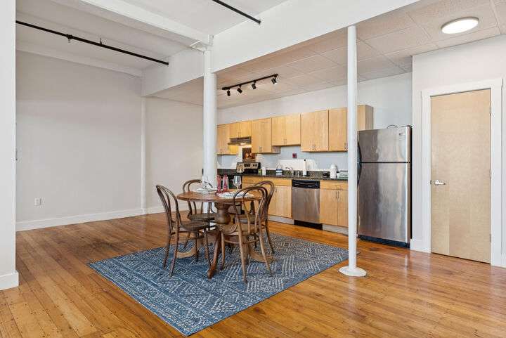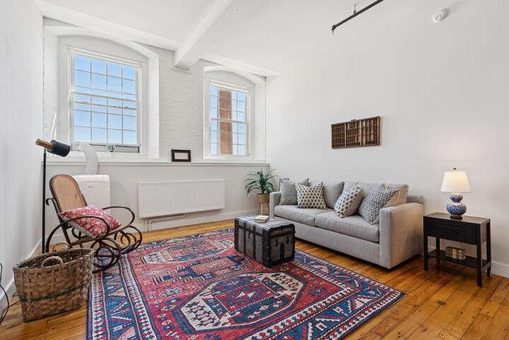 This beautiful 2-bedroom + office, 1-bath condo offers everything you need in the heart of Biddeford, Maine. Located in the historic Pepperell Mill Campus, this spacious and sunny condo blends classic mill charm with modern updates. Features include high ceilings, exposed brick and beams, and large windows that fill the space with natural light. The modern kitchen is upgraded with stainless steel appliances, and the open layout provides plenty of space for a large dining table or future kitchen expansion. A separate office makes it ideal for working from home, and there's a generous entry closet for storage. Enjoy the bright, open-concept living area that's perfect for entertaining or relaxing. The historic details and industrial style give this home warmth and character, while the airy layout invites your personal touch. Located in the heart of revitalized downtown Biddeford, the Pepperell Mill community offers a unique mix of residences, small businesses, and artist studios. Biddeford has transformed from a historic mill town into a vibrant, creative hub on the Saco River, with coffee shops, restaurants, and entertainment just steps away. Community amenities include: Parking space Solar energy Dog park and dog wash Grilling and picnic areas Bike storage EV charging stations Just 20 minutes from Portland and close to the Saco Transportation Center with daily train service to Boston, this condo offers convenience, charm, and a connected lifestyle. Live vibrantly in one of Maine's most exciting and fast-growing cities — Biddeford!