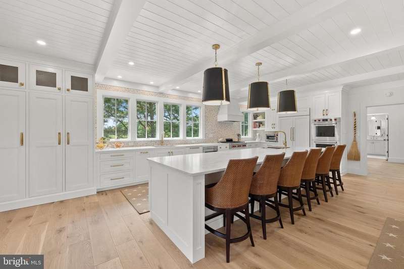 Welcome home to 156 East Side Drive, Rehoboth Beach Yacht and Country Club, featuring a gorgeous golf-front setting, bay views and stunning interior and exterior spaces . This home is perched atop the manicured fairways of the exclusive, private golf course, with distant views of Delaware's most breathtaking club house. The finishes throughout the just completed thorough transformation of this exceptional property were carefully curated and sourced to bring this designer's dream to life. Only the very finest appointments were utilized to complete this masterpiece of casual luxury. The exterior features maintenance-free Nu Cedar siding with wrapped columns, Timbertech Vintage Mahogany decking and a stunning Outdoor Fireplace. The expansive deck also features beautiful bay views over lush landscaping and a just completed brick circular driveway. The interior details include tasteful and timeless choices such as unlacquered Newport Brass fixtures, marble countertops, and custom inset cabinetry throughout. Guests are greeted at the main entrance which opens to a spacious great room with loads of large windows and soaring ceilings, making this room a stunning unique exception to other homes you may have seen. An impressive fireplace featuring beautiful marble surround, large picture windows, custom raised wood paneled details, and versatile spaces were created within this wonderful open entertaining space. The premium kitchen is sure to delight the most discerning chef - with an impressive island, views overlooking the golf course, two sinks, two Cove dishwashers, Wolf range and double ovens, Custom Decorative Hood accent, Herringbone marble backsplash, and more. An adjacent coffee/wine bar buffet offers a 3rd sink and Subzero beverage center. Just off the kitchen, you will find a sunroom drenched in natural light with classic wood wall and wood plank ceiling finishes. This room has a private entrance to the deck and also pocket door separating it from other living spaces. The newly created Owner's Suite provides a perfect spa-like retreat, with large windows, access to the rear balcony, spacious dressing room/walk-in closet, and a glamorous en suite bathroom with large marble shower, marble walls to the ceiling, heated flooring, gorgeous powder blue custom cabinetry and high quality fixtures. The guest bedroom on this level offers a large en suite bath with walk-in shower, and access to the classic wraparound covered porch. Upstairs you will find a private. spacious second en suite bedroom with built in cabinetry, a masterpiece bathroom and expansive closet spaces. In addition to the grand exterior stair entrance, owner's will enjoy the convenience of entering through the enclosed and finished garage space offering a separate secure storage area. This lower level of the home offers a large bedroom / game room with separate exterior entrance; a spacious laundry and hobby space with full size refrigerator, cabinetry and sink; a full bath with tiled shower; office/den space; two conditioned storage rooms; staircase and elevator. This lower level can easily be utilized as staff quarters, an in-law suite, or another private spot for guest accommodations. Every part of this exquisite home exudes comfort and style - an apt setting to enjoy the lifestyle of the community and Rehoboth Beach with its award winning beaches, diverse culinary scene, iconic boardwalk and Delaware's no sales tax shopping. 5th bedroom was transformed into Owner's dressing room/ walk-in closet - could easily be converted back to a 5th bedroom if preferred by new owner.