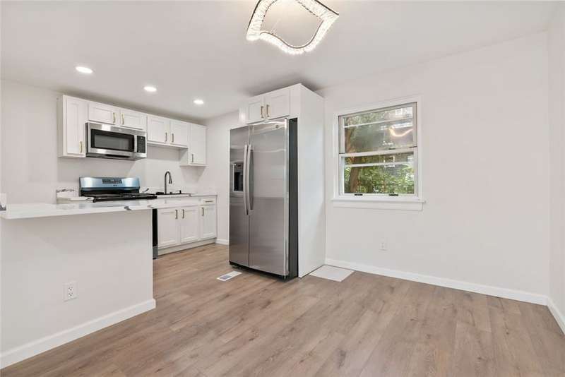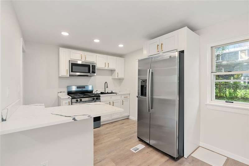 Welcome to this beautifully renovated two-bedroom home in Swissvale!Step into a bright and inviting living room that flows seamlessly into the open-concept kitchen and dining area. The stunning quartz countertops and spacious layout make cooking with friends or family a true pleasure.Upstairs, you'll find a gorgeous, brand-new bathroom and two comfortably sized bedrooms, creating a living space that's both stylish and functional. Private fenced yard for those with pets or those who love privacy.