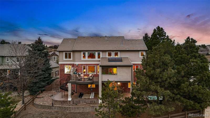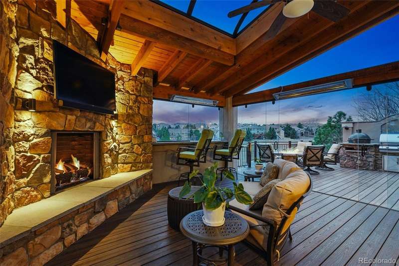 Perhaps Esperanza's finest offering... Welcome to this breathtaking residence, nestled in one of Castle Pines' most sought-after neighborhoods. As you enter this gated enclave, you're immediately greeted by a beautifully landscaped front yard, setting the tone for the elegance that lies beyond. Step inside, and a grand two-story foyer impresses with its soaring ceilings and intricate design, drawing you deeper into the home. Large, airy rooms throughout create a sense of space and openness, with every window framing picturesque views of the surrounding natural beauty. This home is thoughtfully designed and meticulously upgraded, featuring new windows throughout. The showstopper is the fully enclosed all-seasons room off the back deck, where you can enjoy year-round comfort overlooking the open space behind the house. Complete with a striking stone gas fireplace, infrared heaters, custom lighting, sliding glass doors, and an outdoor TV, this space is perfect for entertaining or simply relaxing every day or night. Step outside onto the expansive deck to experience a built-in gas grill and Green Egg, ideal for preparing your favorite meals. Afterward, gather around the gas firepit for a cozy evening of smores or retreat below to the private hot tub for ultimate relaxation. Whether youre playing a game of chess or simply enjoying the serenity, this home has it all. Located in the prestigious Castle Pines North neighborhood, youll enjoy exceptional amenities like a neighborhood pool, miles of scenic trails, and stunning mountain views. Plus, with easy access to top-rated metro Denver schools, this home offers the perfect balance of luxury and convenience.