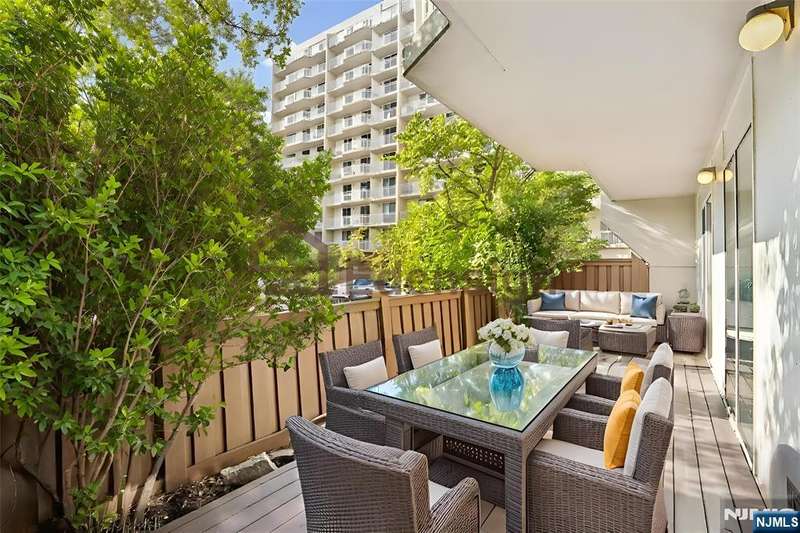 Welcome to Townhouse 5 at Admirals Walk, an elegant waterfront condominium community. This beautifully renovated 1-bedroom, 1.5-bath residence offers a spacious layout with brand-new hardwood floors, a sleek modern kitchen, and upgraded baths. Step outside to your expansive private patio, perfect for entertaining or relaxing outdoors. From the kitchen, enjoy a partial river view, adding a touch of NYC skyline charm to your everyday living. Admirals Walk is a full-service community featuring a fitness center, outdoor pool with breathtaking Hudson River and Manhattan views, tennis and basketball courts, a community pavilion for events, and a picnic area. Convenience is unmatched just a short walk to the NYC ferry and bus, making commuting seamless. This home combines lifestyle and location a rare opportunity to experience waterfront living at its finest. One parking space is included in the rent, and additional parking is available for a fee. Call 917.868.7587 for all showings. Disclaimer: Images are virtually staged to help showcase the property s potential.