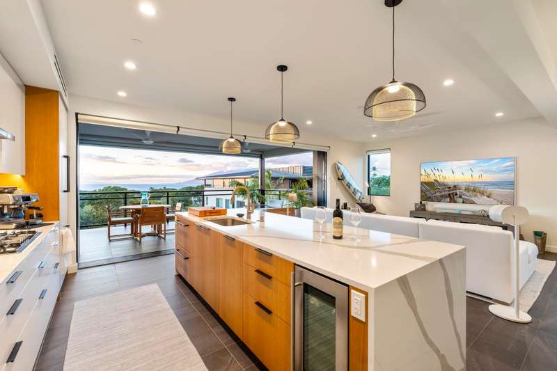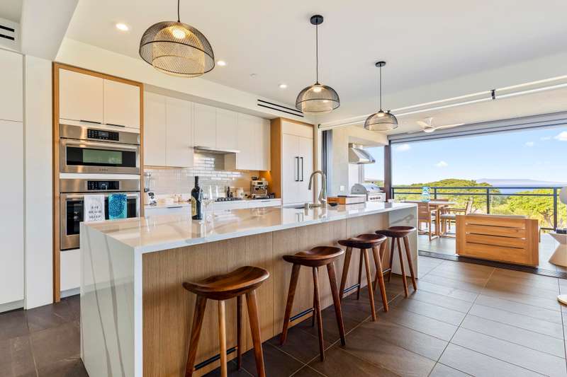 The Pristine Wailea Residence you've been waiting for! Impeccable La’i Loa 3 bedroom 3 Bath Luxury Condo with expansive Ocean and Outer Island Views from the living areas and primary suite. The spacious quality extends in all directions on upgraded beautiful tile floors throughout. Generous open concept living, dining and state of the art kitchen, wide and comfortable, flows unobstructed out to the expansive 312 SF lanai as the handsome gliding glass doors disappear into the wall. Your modern kitchen features stainless Bosch appliances including refrigerator, oven, microwave and propane cooktop, Fisher Paykel double dishwasher, U-Line wine cooler and custom Blum cabinets. Huge quartz waterfall island has bar seating with handsome barstools and pendant lighting. The main lanai features a built in stainless four burner Coyote gas grill with vent. Beautiful furnishings specifically designed for this home are included, so you can enjoy the sumptuous comfort of your new Maui life from Day One. (Owners art excluded) The primary suite will be your luxury sanctuary complete with its own private 112 SF lanai area boasting stunning views plus the amazing primary bath. The premier electronics viewing and entertainment package includes 4 Samsung “The Frame” technology TVs and whole house wireless Sonos sound system. Custom Lutron auto shades and programmable Lutron lighting throughout are available to suit your every mood. Enjoy upgrades galore plus the elegant Hans Grohe fixtures, Rinnai propane fired instant hot water recirculating system, Blum cabinets and Toto toilets. One car garage downstairs with remote garage door access plus huge bonus storage room and an additional assigned parking space. The well equipped workout facility sits next to the tranquil infinity edge pool with bonus lap area and giant hot tub/spa with sauna and steam rooms available. Giant covered community entertainment area with extra grills and prep areas. The community gate puts you a short stroll from the Wailea Beachwalk, the Wailea Resort Hotels, The Shops at Wailea, and multiple world class beaches. Get ready to wake up, grab your coffee and Live the Life You’ve Earned!
