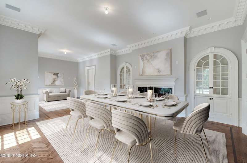 Truly unique 19 Acre estate in the heart of mid country! Prepared to be captivated by this custom built masterpiece of design and craftsmanship. Completed in 2009, and offered to the market for the first time since completion, 97 Pecksland has an unrivaled combination of lot size, quality and privacy. Enter through the grand gated entrance and dramatic driveway to the elevated main house on the primary lot of 8.71 acres, with 2 further sep parcels of 5.3 and 5.13 acres for a total of 19.14 acres in the 2 acre zone. A substantial amount of mature trees balance wide open park like spaces with lawns to the front and rear of the main home. Classically designed to show a high degree of architectural integrity and balance. The Grand entry foyer with double staircase set the tone for the living spaces within. Large informal and formal spaces blend for an ideal venue for large scale entertaining, both inside and out. First floor features an oversized living room / bar area, multiple office spaces, guest suite, dining room, kitchen / fam room and kennel room for 3 large dogs. 3 car garage off the mudroom along with 3 car port cochere for day to day parking. A car collectors dream awaits in the lower level with further parking for over 30 cars. Lower level also features a generous wine cellar, tasting room and golf sim. A huge primary suite with terrace overlooking the rear yard, primary sitting room and multiple bathrooms and walk in closets. 6 further fam / guest suites and large laundry on the 2nd floor. High ceilings on the finished third floor that include gym / play space with full bath. Sep pool house with 2 ensuite bedrooms, changing area, and entertaining space. Multiple pools / spa perfect for all ages. Further original structure used for staff housing. Unparalleled privacy and serene surroundings make this exceptional estate a must see for the most discerning of buyers searching for architectural grandeur, and exceptional amenities.