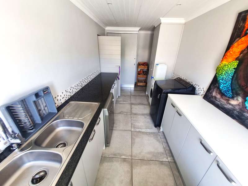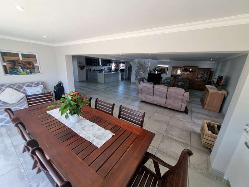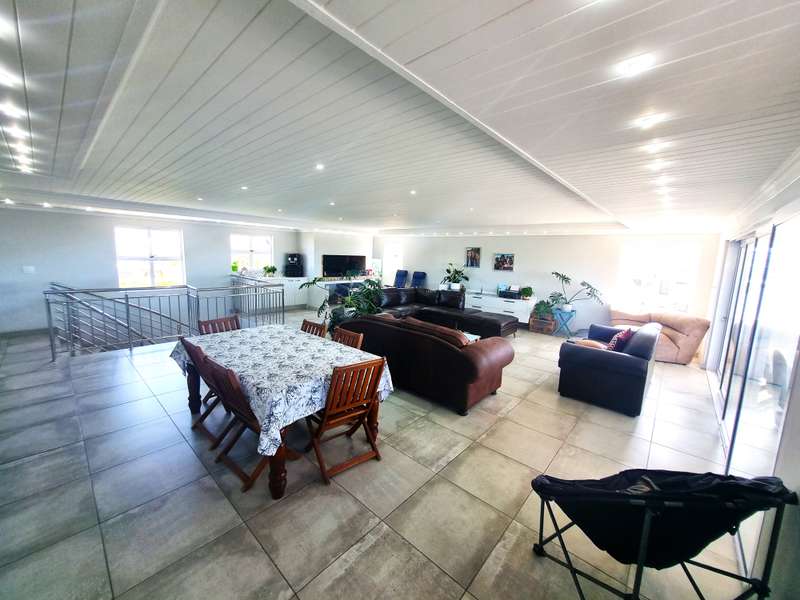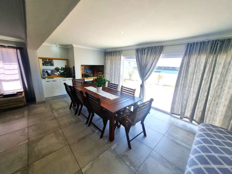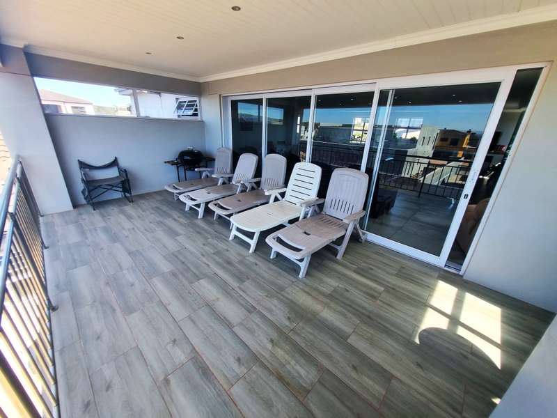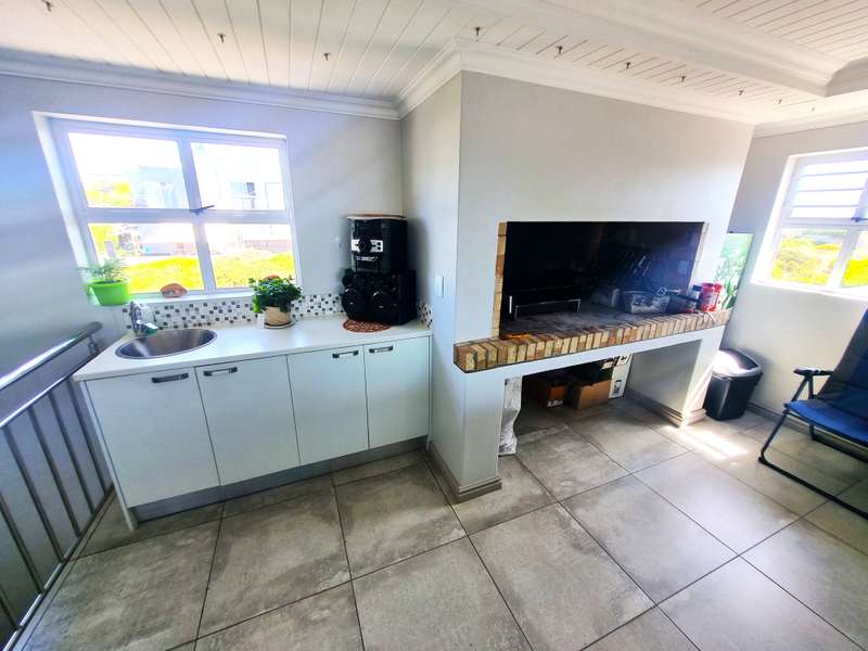 This stunning house is the epitome of a spacious and inviting home, perfect for hosting guests and creating memorable experiences. Here's a breakdown of the key features of this house: General Features: Two expansive living areas on the ground and upper levels, ideal for social gatherings. 4 bedrooms, each with built-in cupboards and en-suite bathrooms. Flexibility to choose the main bedroom. Dressing closet in the upstairs bedroom. Additional living area upstairs with an indoor braai and prep area. North-facing under-roof balcony with lagoon views in the distance. Open-plan kitchen with a large center island, wrap-around work surfaces, and a 900mm stove. Spacious lounge and dining area on the ground floor. 3 x Built-in braai's (one being a wood and gas braai combo) for all-weather entertaining. Study on the ground floor. Guest bathroom for added convenience. Double garage for ample vehicle parking and storage. Location: Close proximity to a private school, the lagoon, and the West Coast National Park. Appeal: The property is a true entertainer's delight, emphasizing its suitability for social gatherings and hosting guests. The flexibility to choose the main bedroom adds a personalized touch. The presence of an indoor braai and prep area, along with a balcony with lagoon views, enhances the property's entertainment potential. Convenient features like a study and guest bathroom cater to practical needs. Contact me today to view this stunning property.