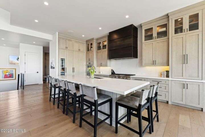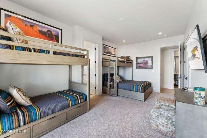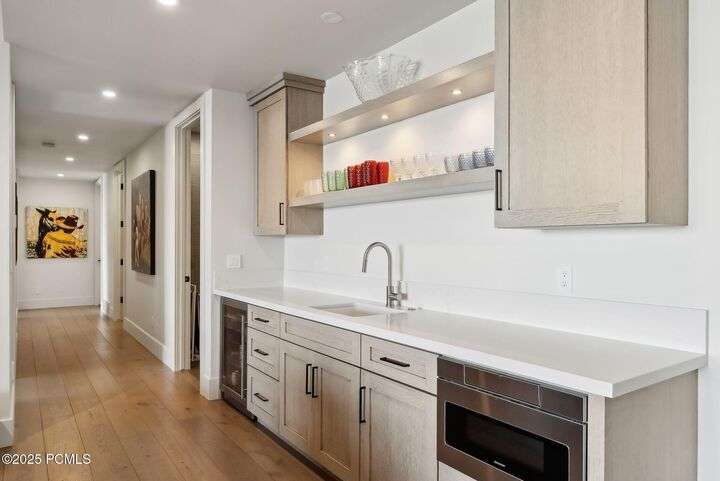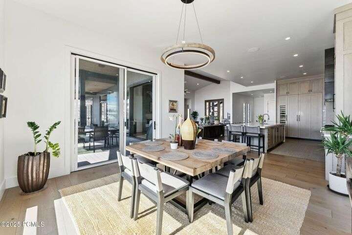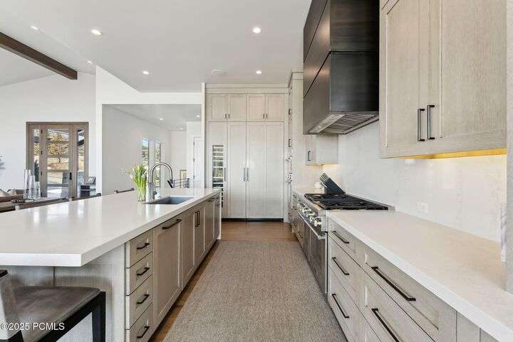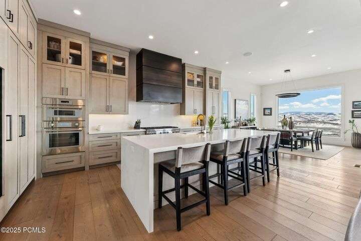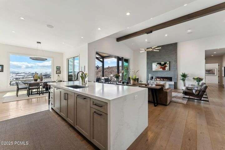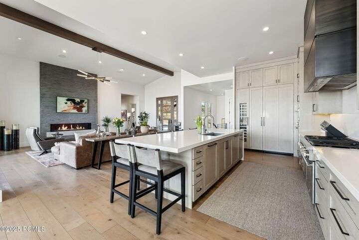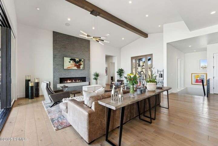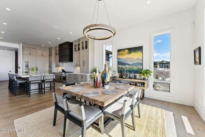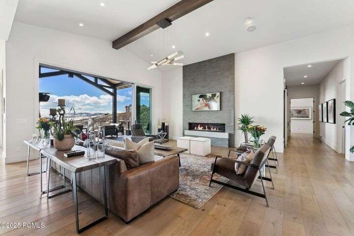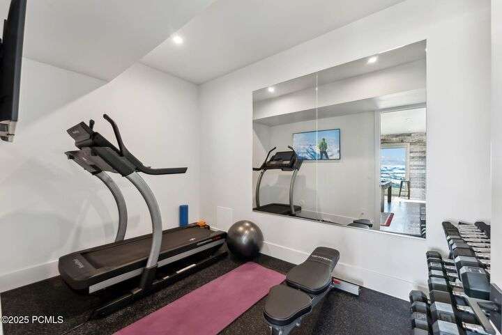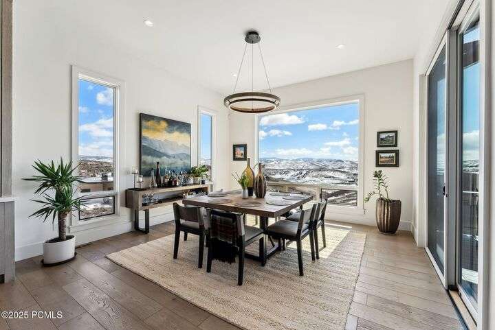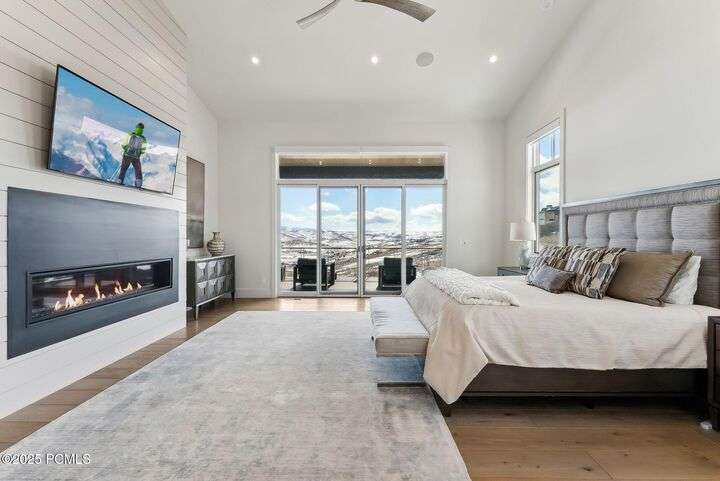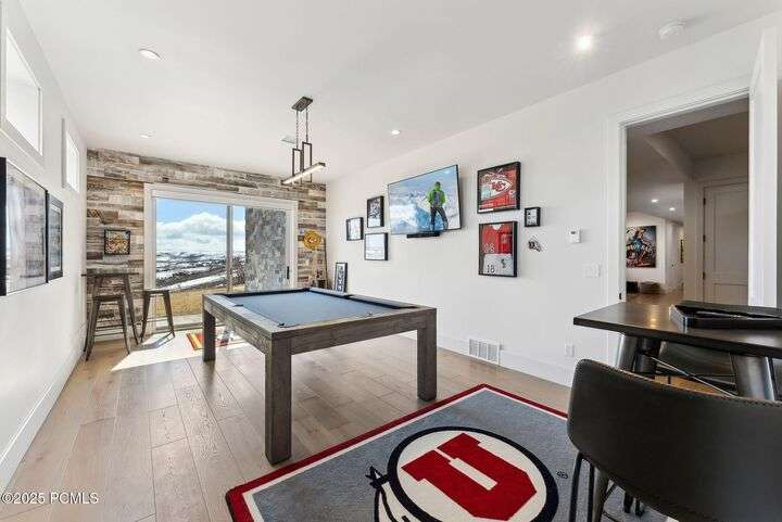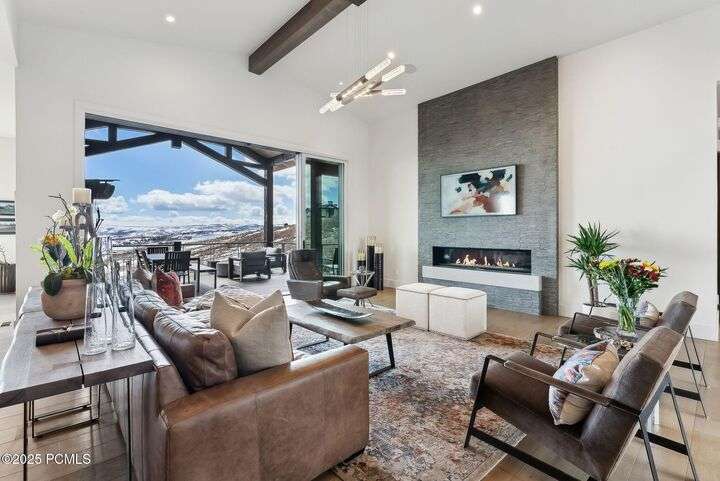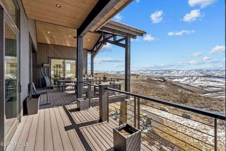 Located in the prestigious Tuhaye community, this beautifully designed 5-bedroom, 6.5-bathroom mountain modern home offers the perfect blend of contemporary luxury, comfort, and functionality. With expansive long-range views and southern exposure, natural light fills the living spaces throughout the day. Thoughtfully crafted for both relaxation and entertaining, this home features a flat back yard, an oversized 3-car garage with radiant heat and 10' doors, and a radiant heated driveway for year-round access.On the main level, you'll find a spacious primary suite with a spacious balcony, a dedicated home office, a guest ensuite bedroom, and a powder room. A laundry room is also conveniently located on this level. The open-concept living and dining area boasts breathtaking views and seamless indoor-outdoor flow, with glass accordion doors leading to an expansive deckperfect for entertaining.The lower level is designed for recreation and relaxation, featuring a pool room, a private gym with a rubber floor, mirrored wall, full dumbbell weight rack with bench, and a top-of-the-line NordicTrack treadmill. It also includes a music studio/game room, an additional laundry room, and three spacious bedrooms. This level is well-appointed with three baths and one full bath, providing ample accommodations for family and guests. Reclaimed wood (Stickwood) accent walls add a warm mountain ambiance, creating an inviting retreat.Smart home automation includes Lutron wireless lighting switches, seamlessly integrated with Google or Alexa for effortless control. A whole-house Sonos music system extends to the outdoor patio and deck, ensuring a seamless audio experience inside and out. Outdoor living is elevated with a covered patio featuring a television, a fully landscaped yard, and multiple entertainment spaces, including a BBQ station on the upper deck and a movable pizza oven near the hot tubperfect for aprs-ski evenings or summer gatherings by the fire pit.