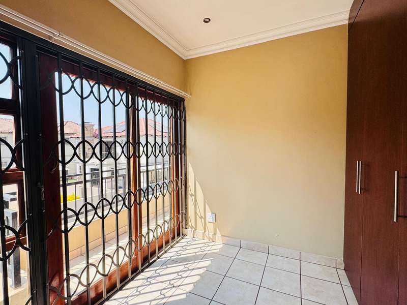 HOME FOR SALE IN SECURE, CENTRALLY LOCATED ESTATE Step into comfort and convenience with this lovely home, perfectly situated in a secure estate. As you enter, you?ÇÖll be welcomed by an open-plan living area seamlessly flowing into the kitchen, creating the ideal space for family time or entertaining guests. A sliding door leads out to the undercover patio, perfect for enjoying the outdoors all year round. This cosy home features an enclosed yard, providing a safe haven for children and pets to play freely. Upstairs, you'll find all the bedrooms, including the main bedroom with its own en-suite bathroom. The third bedroom also opens onto a private balcony, offering a peaceful retreat with lovely views. Parking is catered for with a double automated garage, ensuring convenience and security. Don?ÇÖt miss the opportunity to view this property.