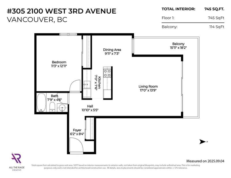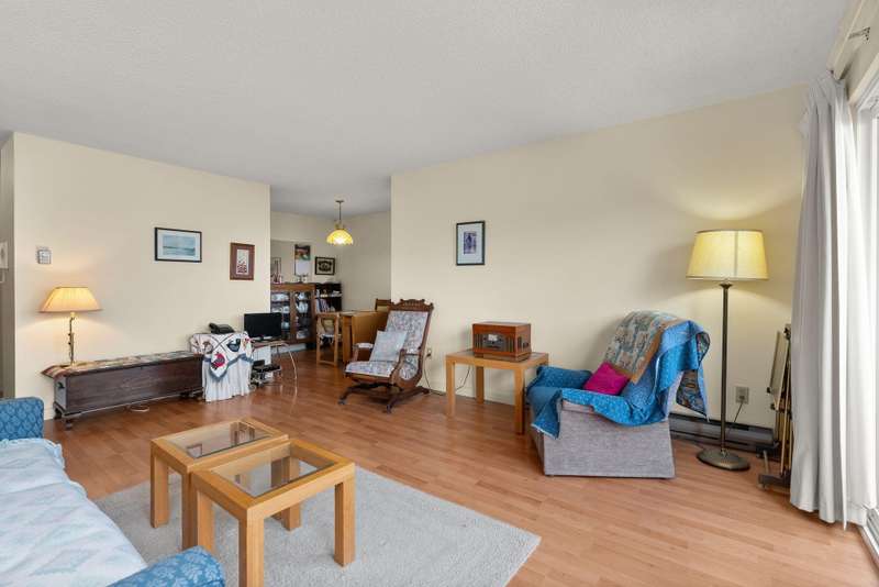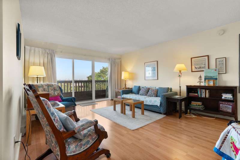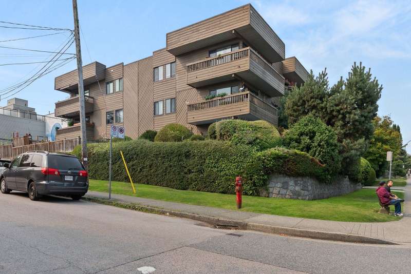 Views of the water, city and mountains! Step out on to the wrap around patio of this north-facing, north of fourth apartment in the heart of Kits! This location cannot be beat! Stroll up to all the shops, restaurants, cafes and fun of 4th Ave, or walk down to Kits Beach and all that it offers. This corner unit has 745 sq ft, 1 bed and 1 bathroom ready for you to make it your own. Enjoy the view from the large living room & large bedroom to sleep and work in. A great community in this building, with free shared laundry. With bus access on 4th or future train access at Arbutus and Broadway nearby, this is the perfect walkable home with a Walk Score of 97! but with 1 parking you can drive anywhere too. Better than renting, a Kits home to buy! Open Sat 1-4p, Sun 11-12:30p