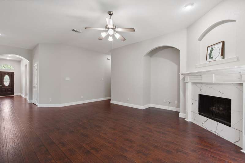 This property is for lease or for sale! Charming 4-Bedroom Lease Home in a Quaint Community!Discover this beautifully maintained one-story home located in a welcoming neighborhood with access to a community pool and playground. Inside, hardwood floors flow throughout the open layout, filled with natural light in every room. The entryway opens to a cozy sitting area and formal dining space, perfect for entertaining. The kitchen features quartz countertops, abundant cabinetry, a pantry, and a spacious island, with a breakfast area just steps away. The living room boasts soaring ceilings and a fireplace for added comfort. The primary suite is tucked away for privacy and offers a relaxing ensuite bath with dual sinks, a walk-in shower, and a garden tub. Secondary bedrooms each feature large closets and share their own hallway for separation. Additional highlights include a laundry room with full-size connections, a rear-entry two-car garage, and a fully fenced backyard with a covered patio. Conveniently located near Hwy 66 and I-30 for easy commuting. Property is also for sale. Please see MLS 21091505.