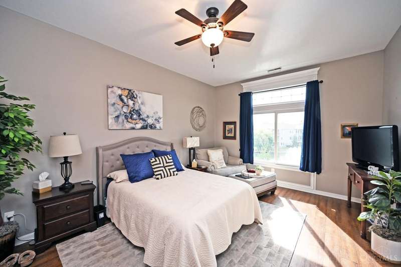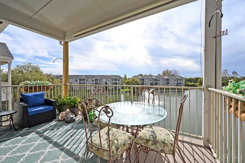 What a view from the covered deck/balcony of the lake with all the geese, ducks, and cranes! This two bedroom condo w/ separate study has an open great room that walks out to the balcony with plenty of light. Large primary bd. with 2 walk-n closets and lg. attached bath. The entry to the unit is on the 1st floor and has a direct entry garage as well, then stairs to the living area. Great community. Don't miss out on this place.