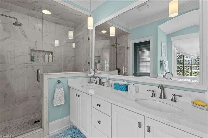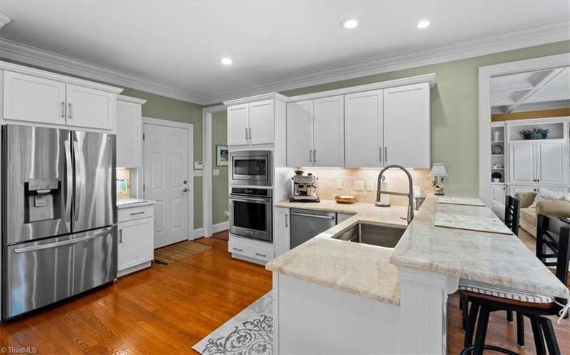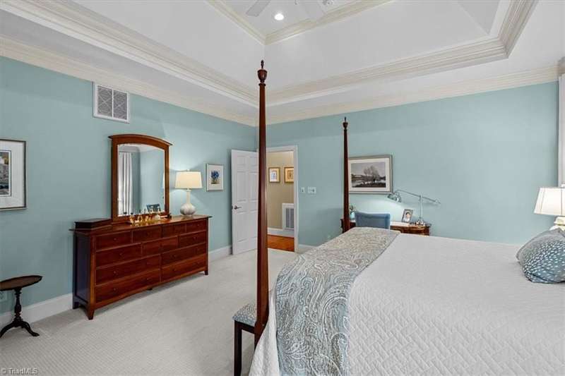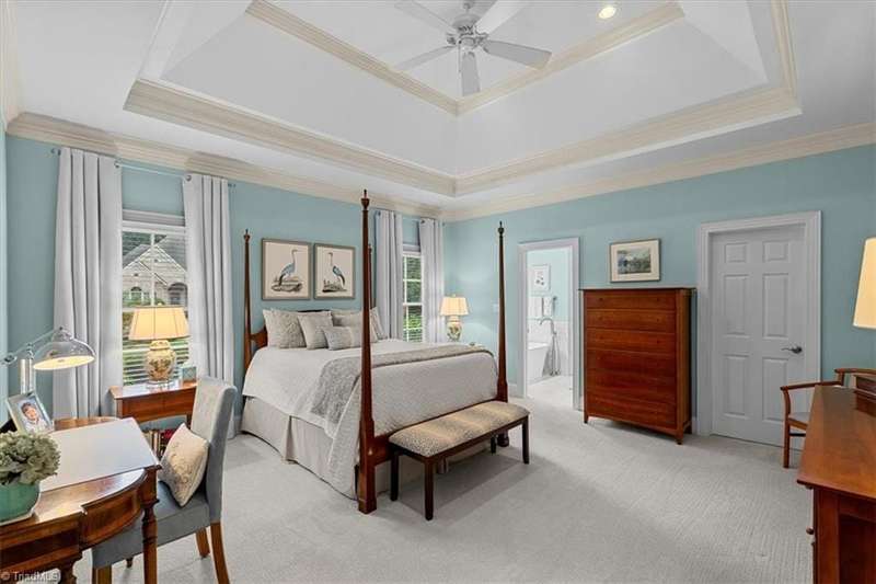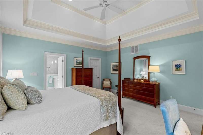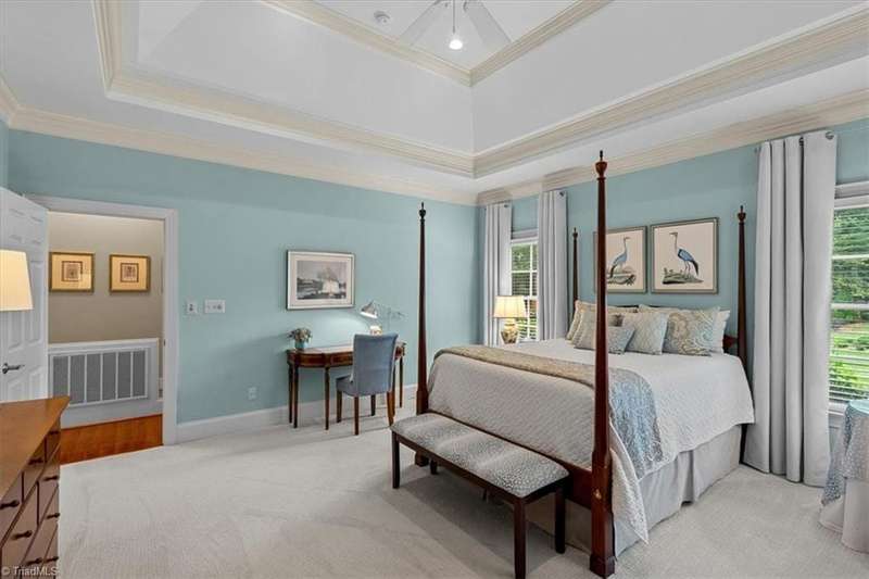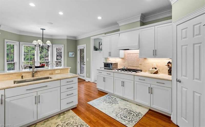 Welcome to your Greensboro dream home in the beautiful Blue Heron neighborhood of Lake Jeanette! This pristine home offers impeccable updates and open living spaces, perfect for modern living. Main levelfeatures a lovely primary suite with a walk-in closet and stunning bathroom offering a spa-like retreat. Traditional dining room for formal entertaining and a home office space that is perfect for working from home. Light filledgreat room boasts coffered ceilings, gas log fireplace and custom built-ins. Picture perfect kitchen features classic quartzite countertops, custom cabinets, stainless steel appliances and an elegant backsplash and opens to acharming breakfast area that perfectly overlooks the peaceful backyard. Upstairs you'll find two additional bedroom suites plus a spacious bonus room for added flexibility. Multiple easy access walk-in storage areas. Outdoor living provides a private oasis with a paver patio that overlooks the tree lined backyard.