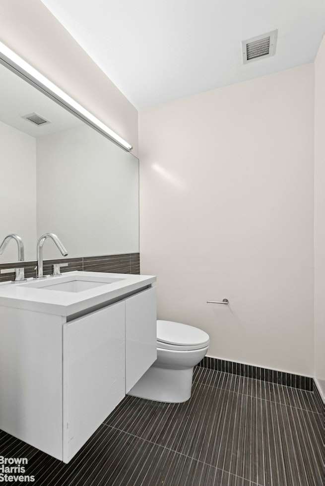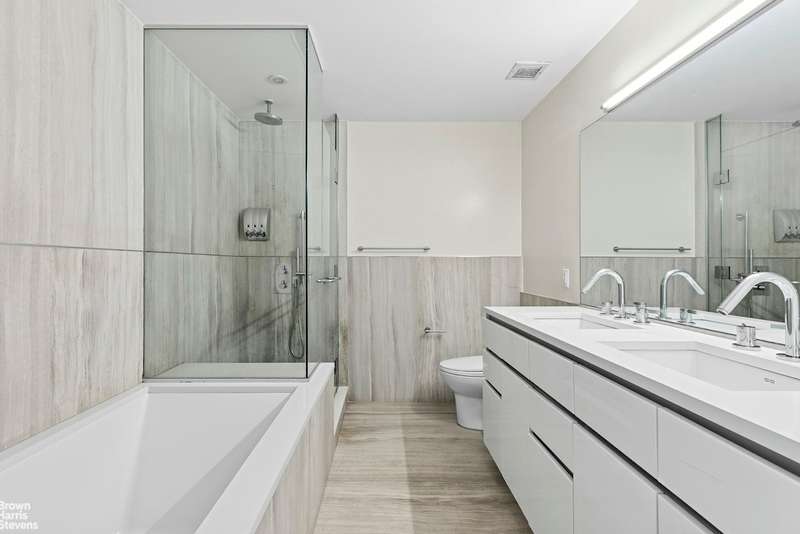 50 Franklin Street is a contemporary condominium designed by Ed Rawlings, offering top-tier amenities including a 24-hour doorman/concierge service, a resident media lounge, a fitness center, pet spa, bike storage, on-site parking, and even a furnished guest suite available for rent for short-term stays.