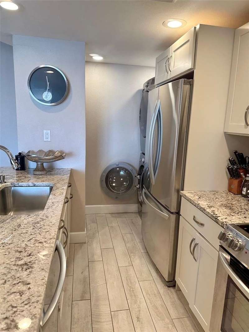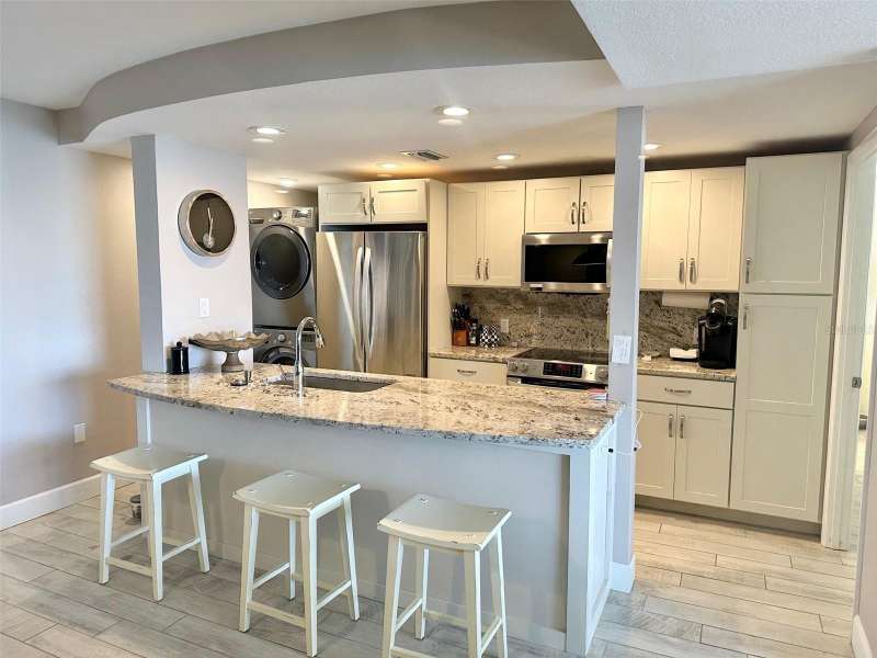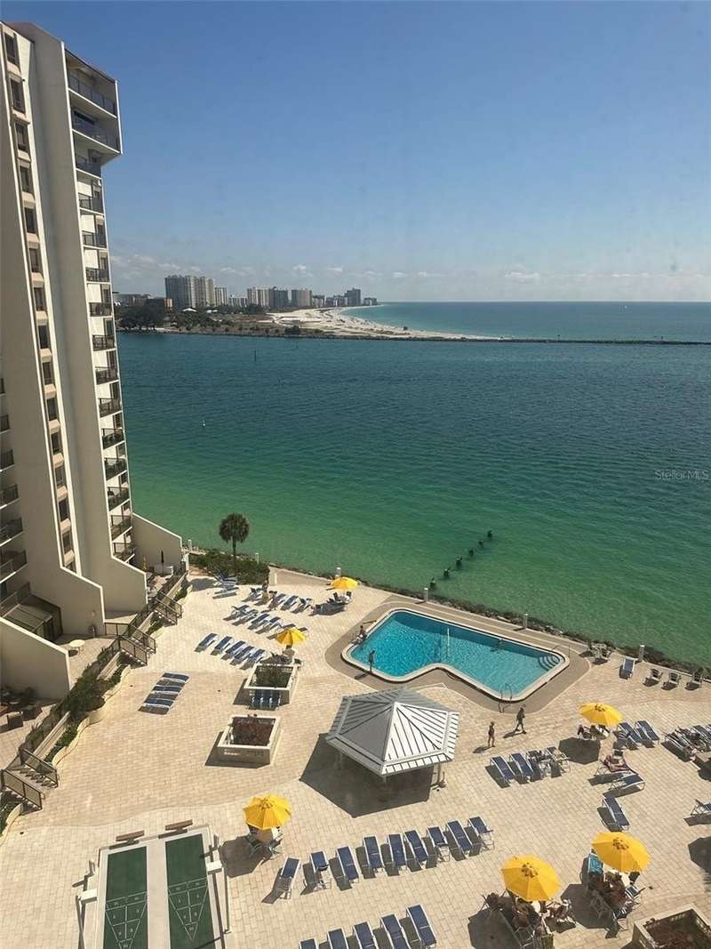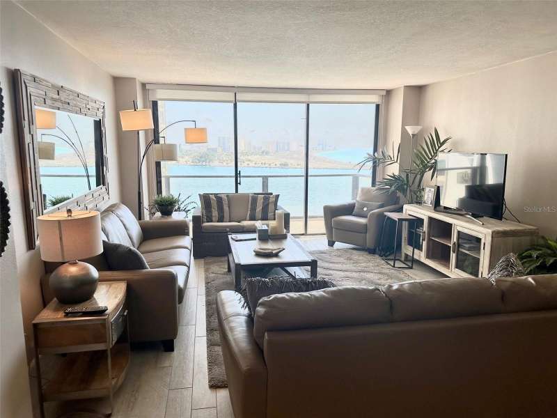 AVAILABLE NOW. PLEASE INQUIRE FOR SEASONAL/OFF SEASON RATES. Outstanding turn-key 2 bed/2 bath condo with stunning water views from every room on the world famous Clearwater Beach! Ceramic tile flooring throughout, high end LG stainless steel appliances AND full-size LG washer & dryer in unit. Split bedroom plan for privacy; Primary bedroom bath has tiled shower with frameless glass door shower. Second bathroom has contemporary, deep soaking tub/shower. Other features include plantation shutters on bedroom windows, heavy 5 panel doors, designer pocket/sliding doors for efficient space use, granite countertops, recessed ceiling lights & private balcony. Assigned underground/under building parking space. FULLY FURNISHED: all furnishings, dishes/utensils, bedding, TV, etc. Just pack a suitcase & a toothbrush! Community features include gated access, 24/7 security guards. Minimum rental period is 1 month. Walking distance to beach, shopping, restaurants, night life, recreation, and right on the Jolly Trolley bus line.