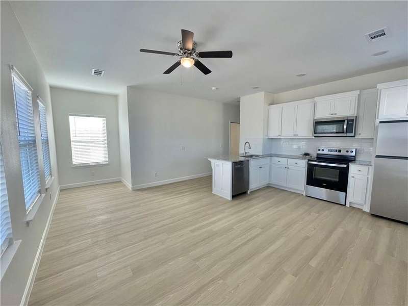 Downtown Springdale new construction stacked duplex with 2 parking spaces. Razorback Greenway trail is in front yard, and home is within close proximity of Luther George Park. This 2 bedroom, 2nd floor unit comes with all new appliances including a refrigerator and a stacked washer and dryer. This brand new home has granite countertops, LVP floors, a nice front porch, and a large shared yard for activities. The construction project to the West is for new townhomes.