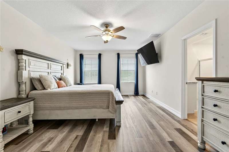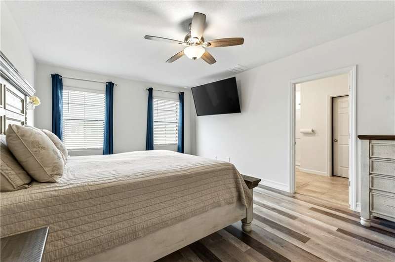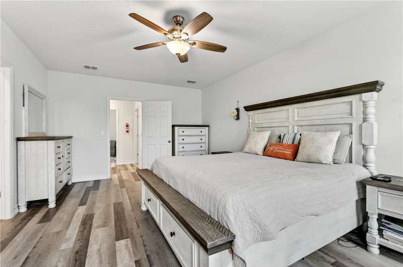 Don't wait to build! This home boasts both stories built of concrete block, featuring a flexible layout with a dedicated home office or formal dining room option on the main level. The main floor includes a bedroom with a full bath, central living area, and an open kitchen with an extended island. The upstairs offers a luxurious primary bedroom and bathroom suite, three additional bedrooms, and a secondary living room ideal for family movie nights or story time. Only 4 years young, no carpet, immaculately maintained. Excellent community amenities! Sizes & measurements subject to error.
